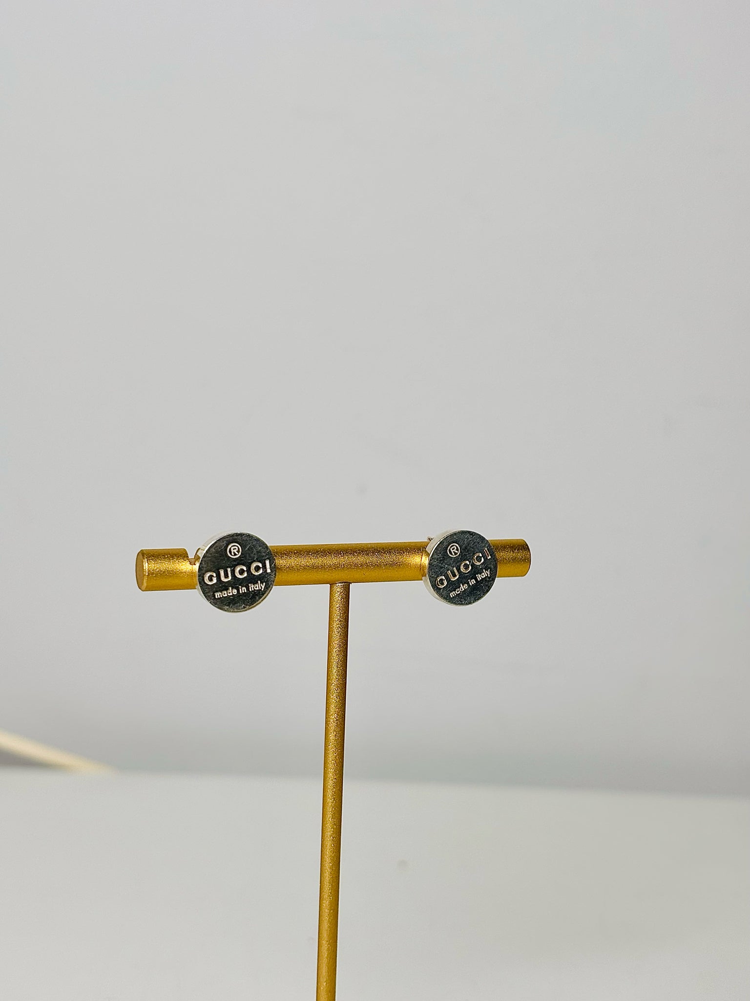 Gucci Sterling Silver 925 Stud Logo Engraved Earrings