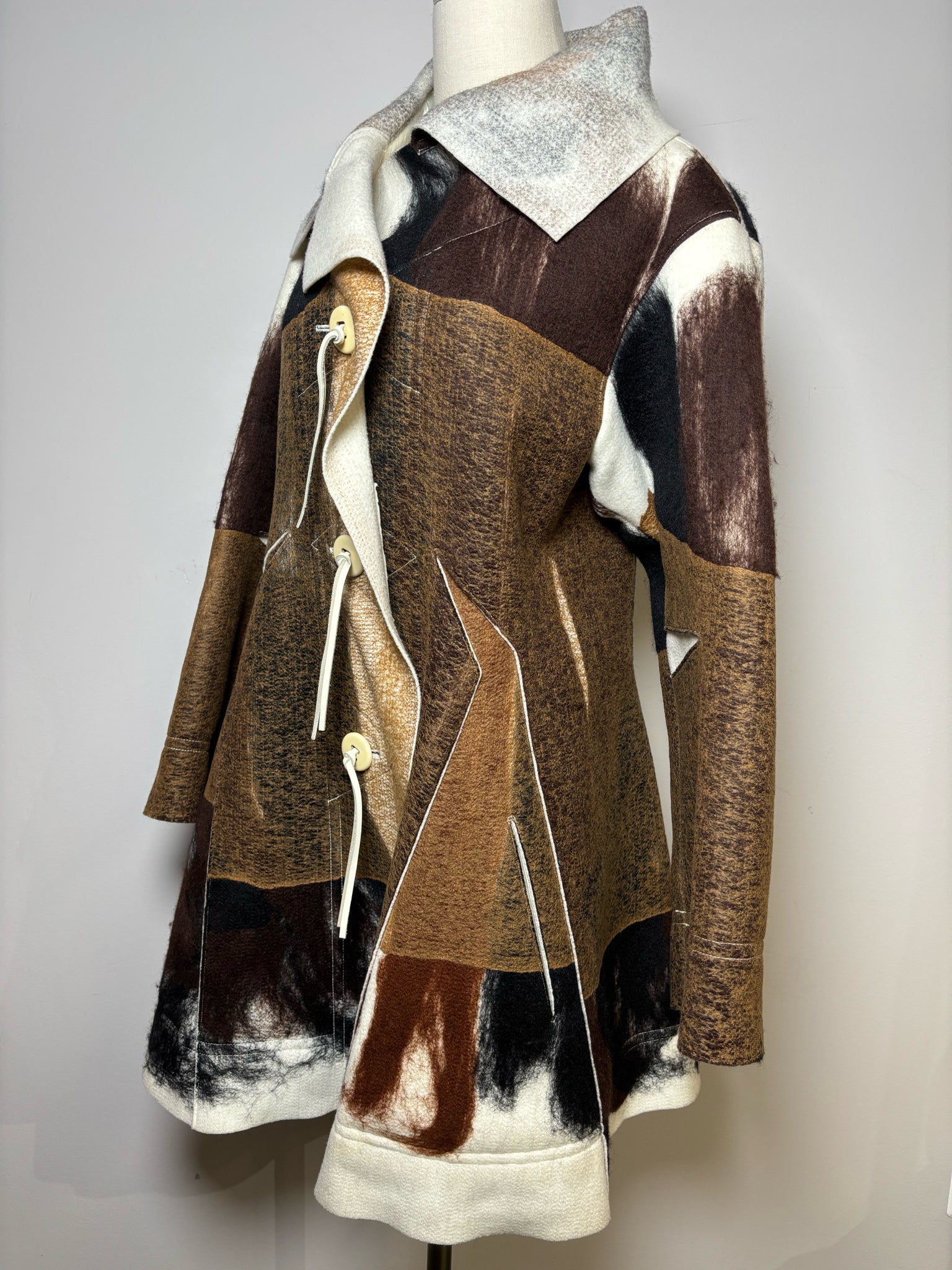Issey Miyake Brown, Black, Cream Marbled Felt Coat