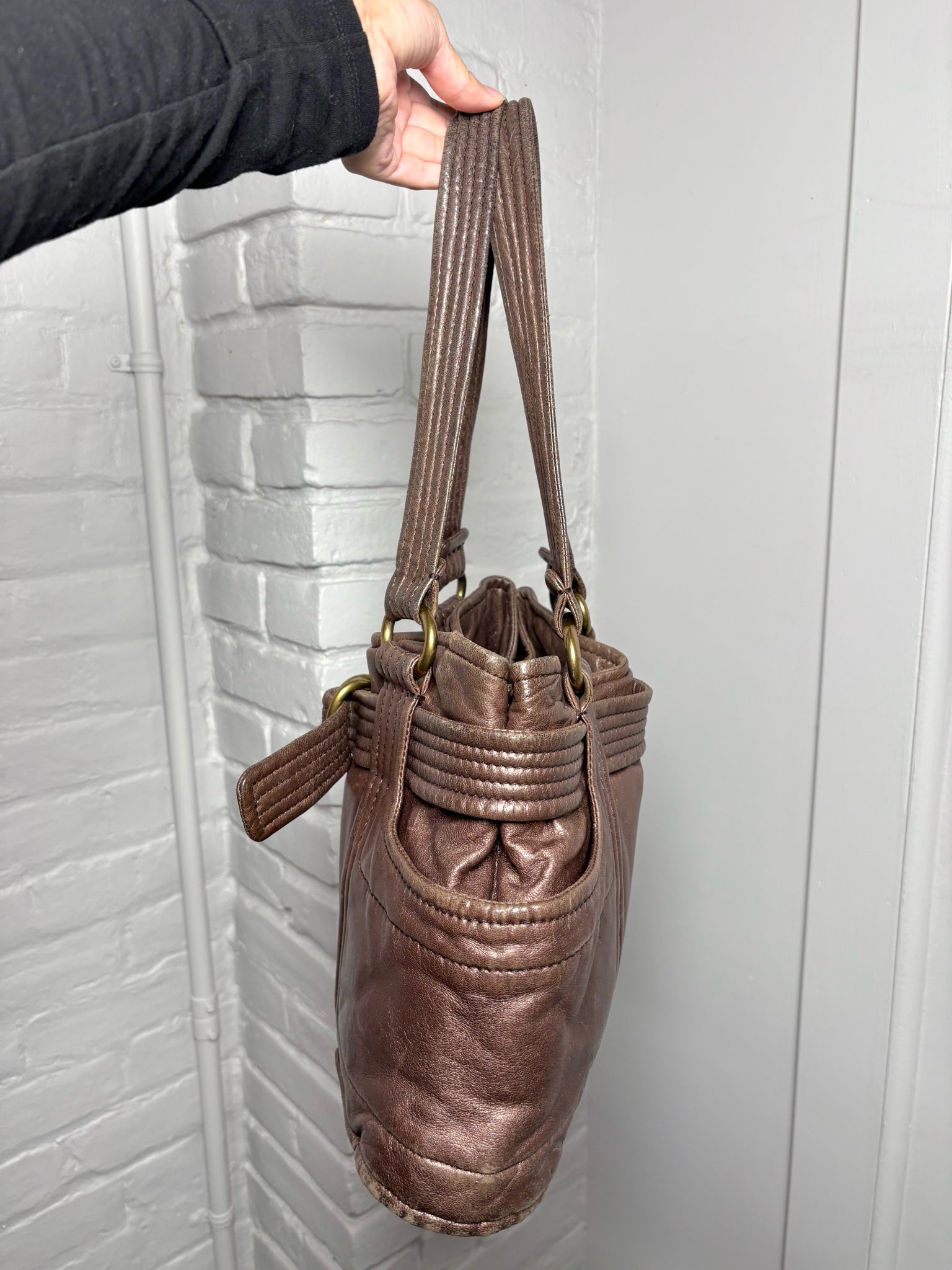 Kooba Solid Leather Bronze Shoulder Purse