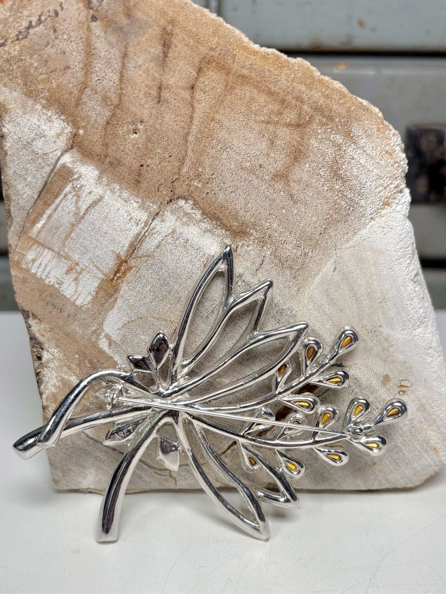 Large Vintage Rhinestone Floral Bouquet Brooch Silver Pot Metal
