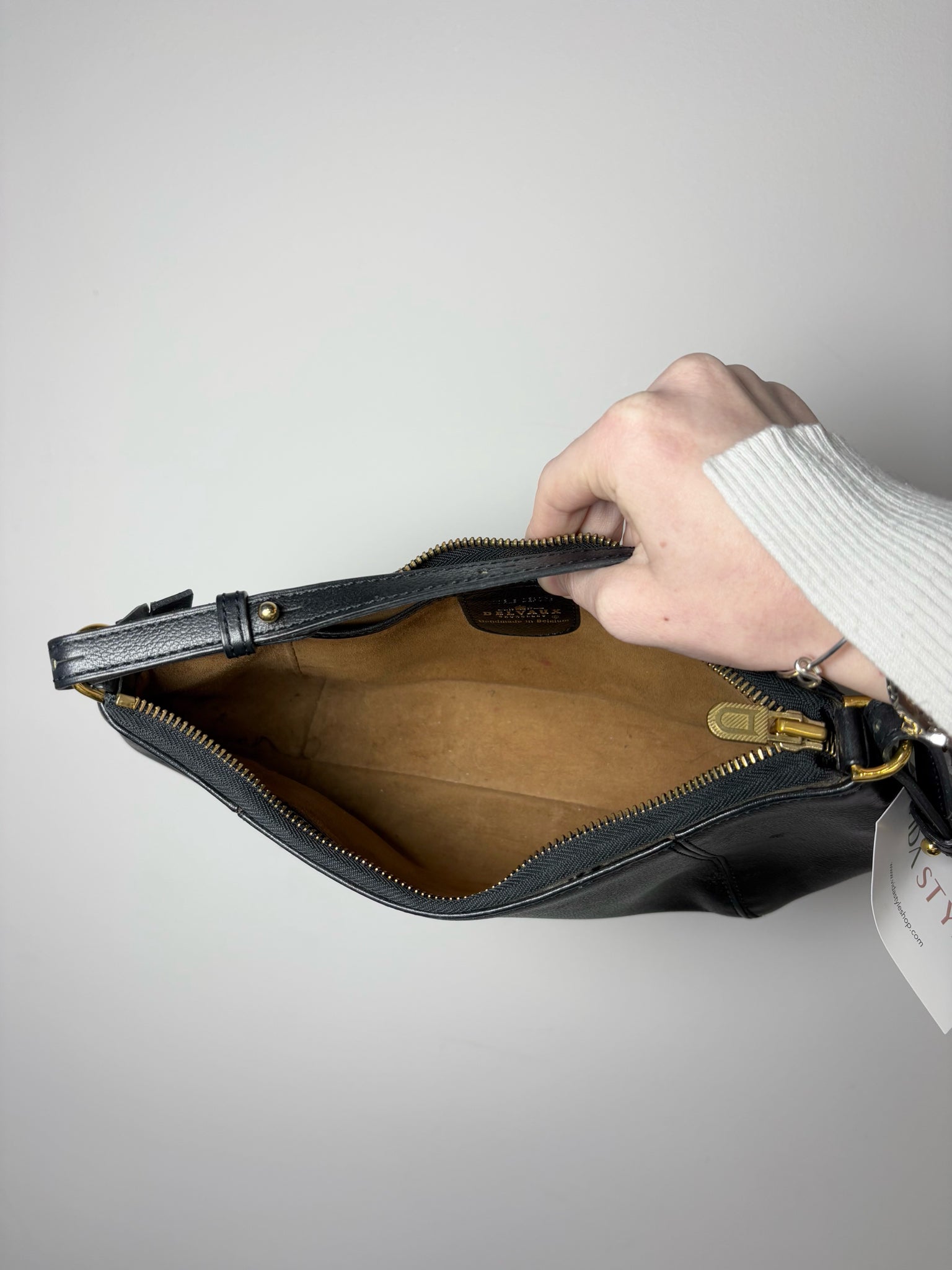 Rare and collectible, this Delvaux “Desir” shoulder bag is a vintage treasure crafted in luxurious leather with gold-toned hardware throughout. Designed with an adjustable shoulder strap and a signature leather “D” hangtag, it combines timeless elegance with functional sophistication, including an interior open pocket for essentials. This iconic piece reflects Delvaux’s heritage of exquisite craftsmanship and is a standout addition for collectors and connoisseurs of fine vintage accessories.