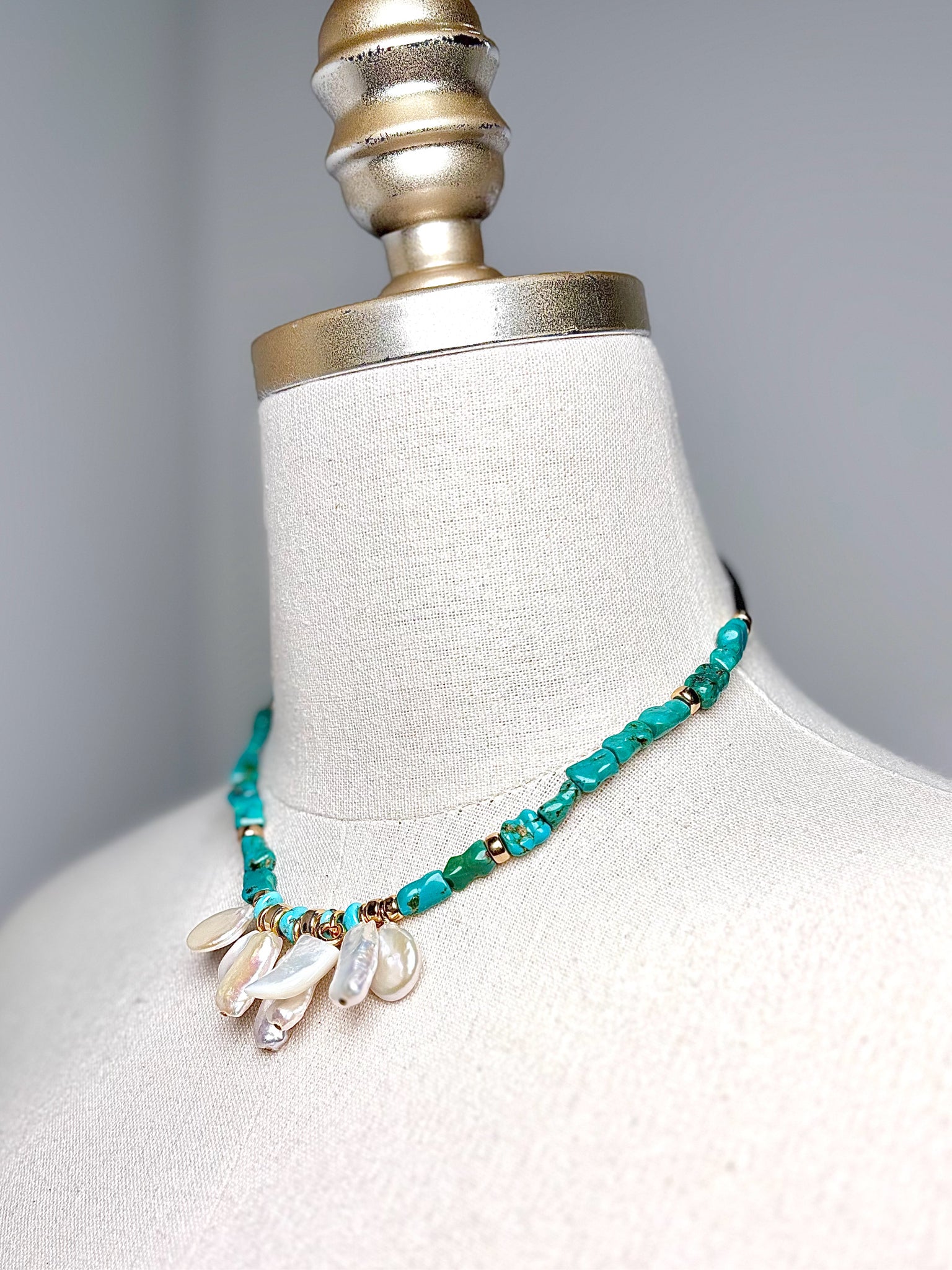 - Gemstone = Turquoise, Freshwater Pearls