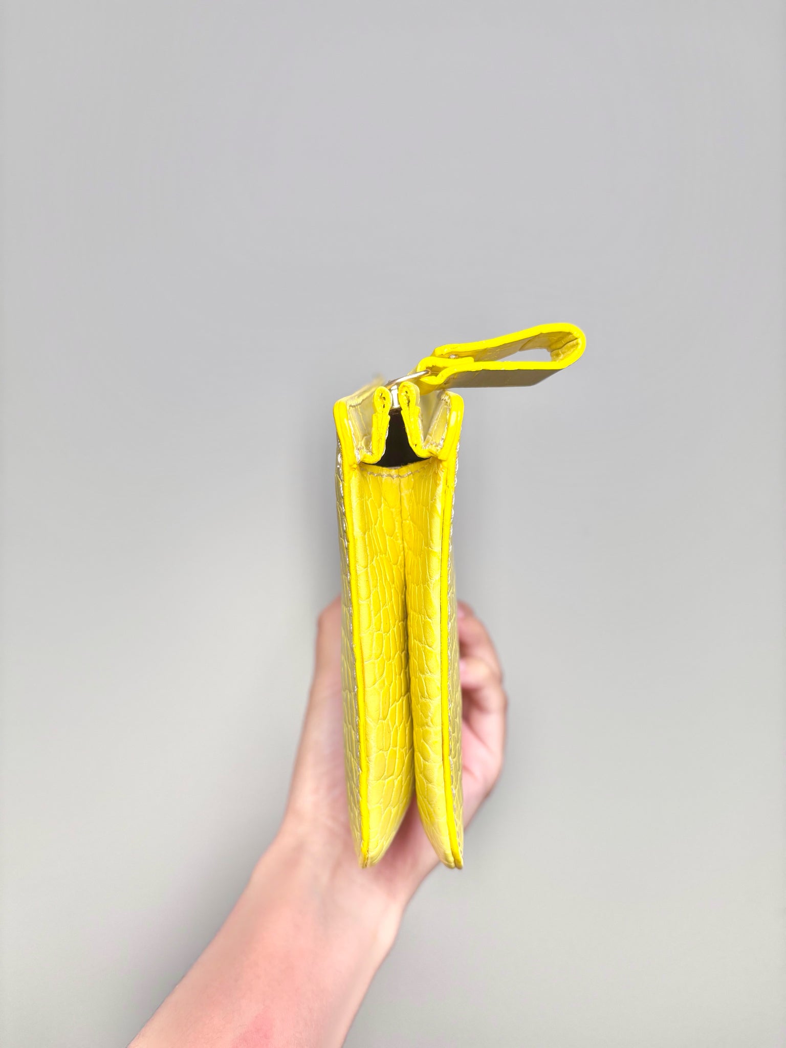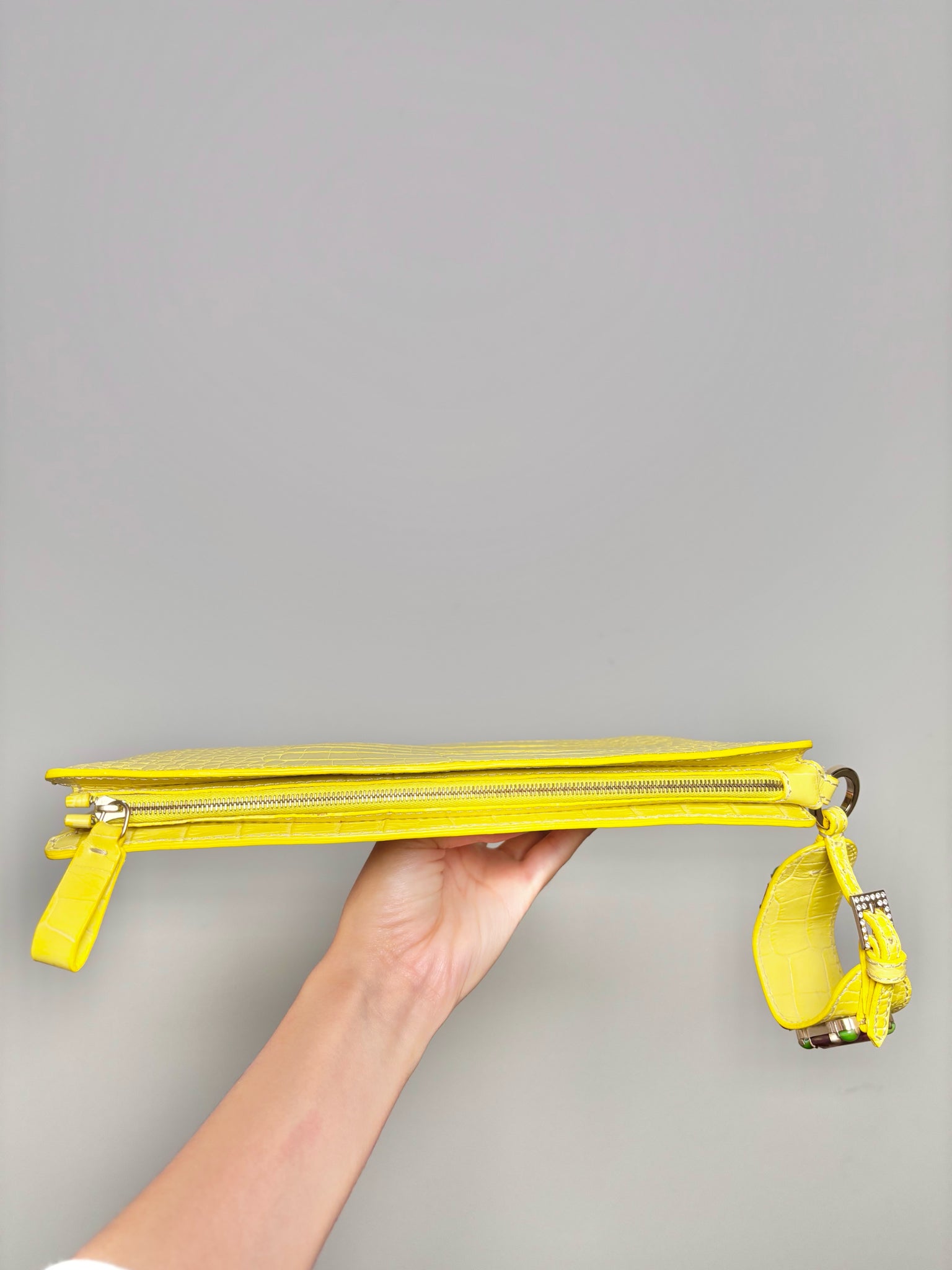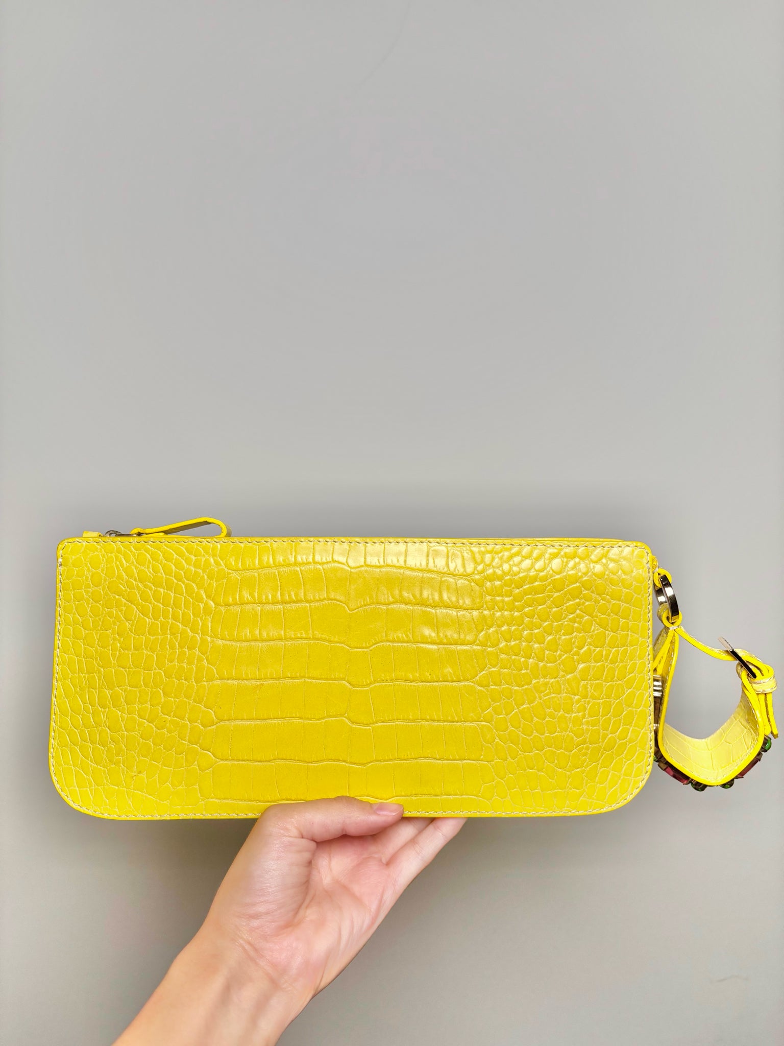 Valentino Garavani Yellow Embossed Leather Convertible Wristlet Clutch – Early 2000s