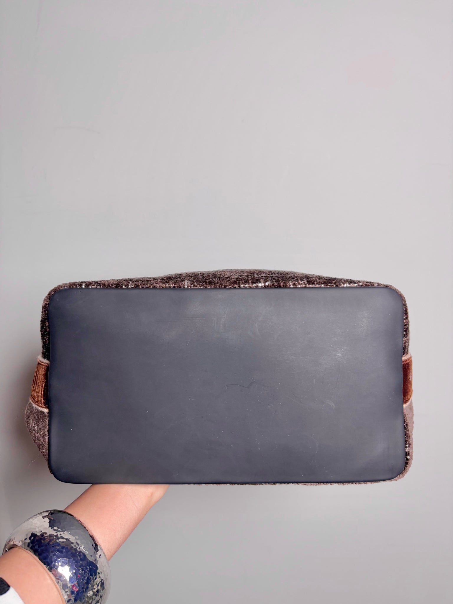 Via Mailbag brown tweed fabric/textile tote bag with removable straps. Made in Italy. Comes with dust bag
