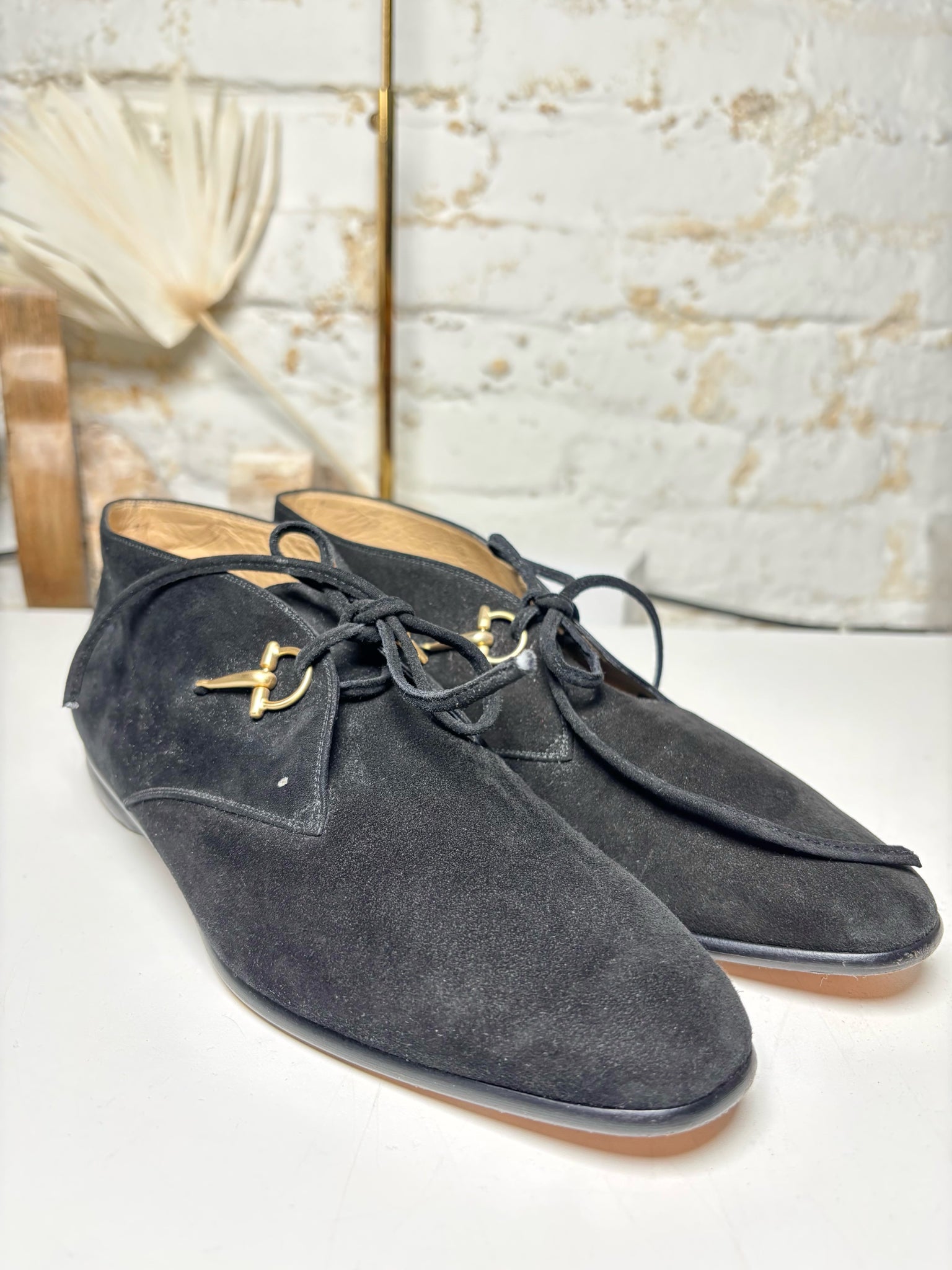 Gucci Black Suede Horsebit Oxford Shoes – Size 37.5/7.5 US