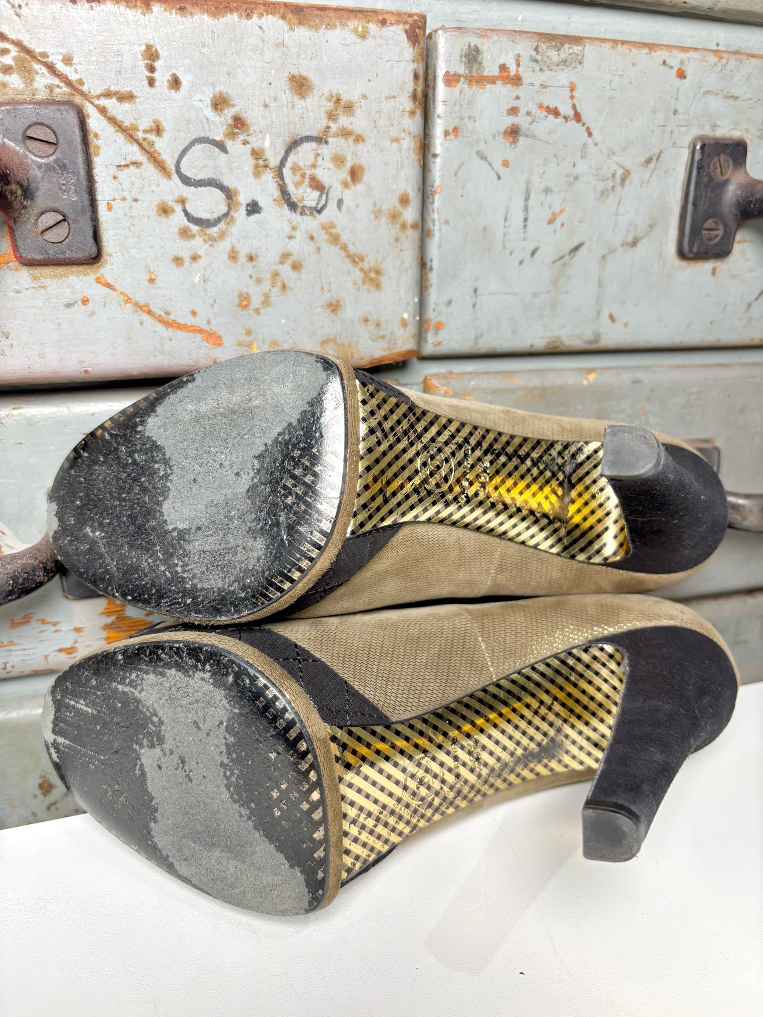 W Shoe Size 38.5 Chanel Khaki, Black Heels