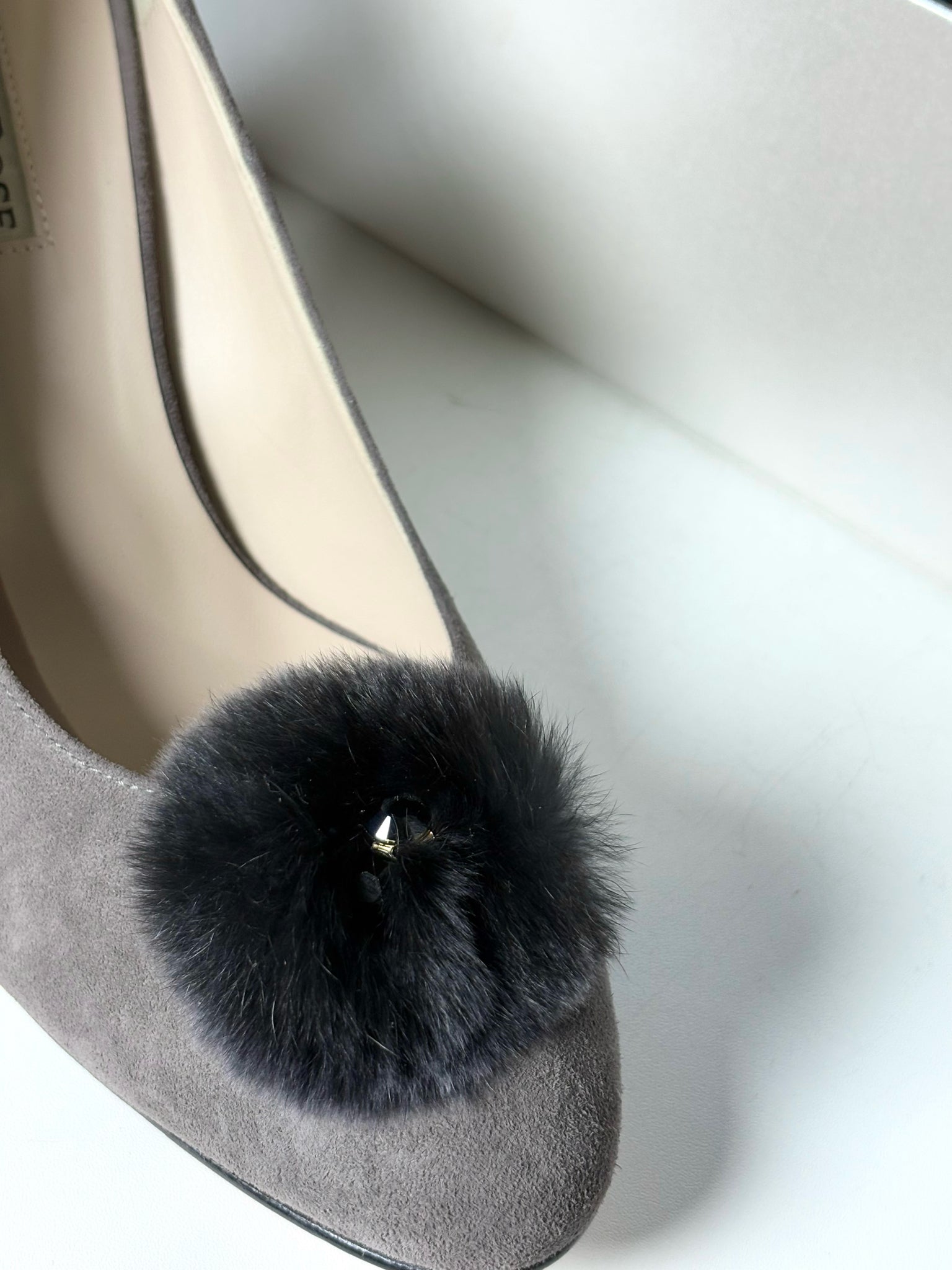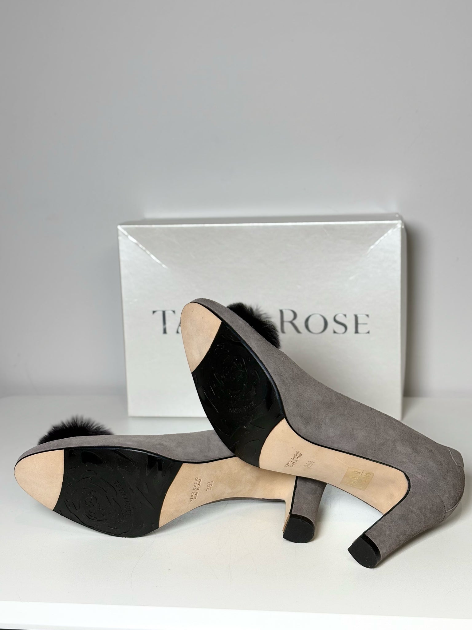 W Shoe Size 39.5 (8.5/9 US) Taryn Rose Dark Gray Suede Fur Trim Pump