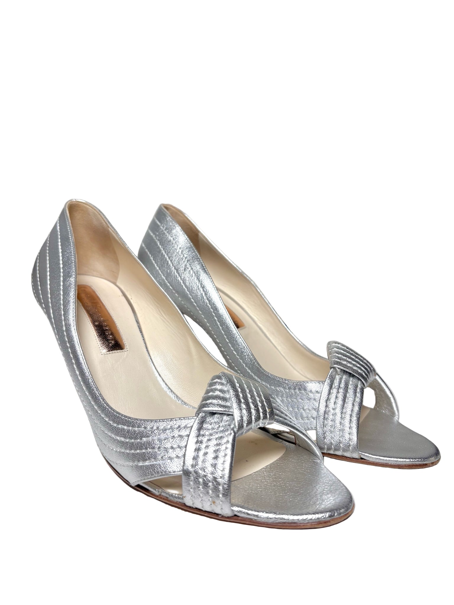 W Shoe Size 39 (8.5 US) Rupert Sanderson Silver Leather Cowhide Pump