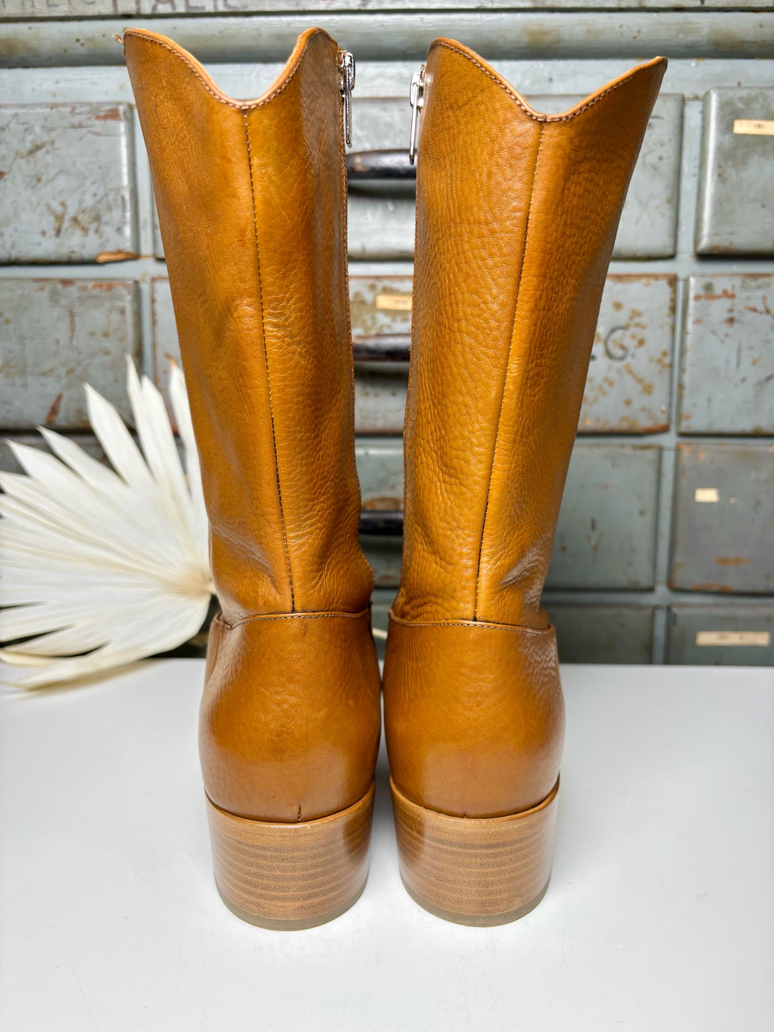 AGL caramel leather mid-calf boots with interior zippers in a size 10.5.