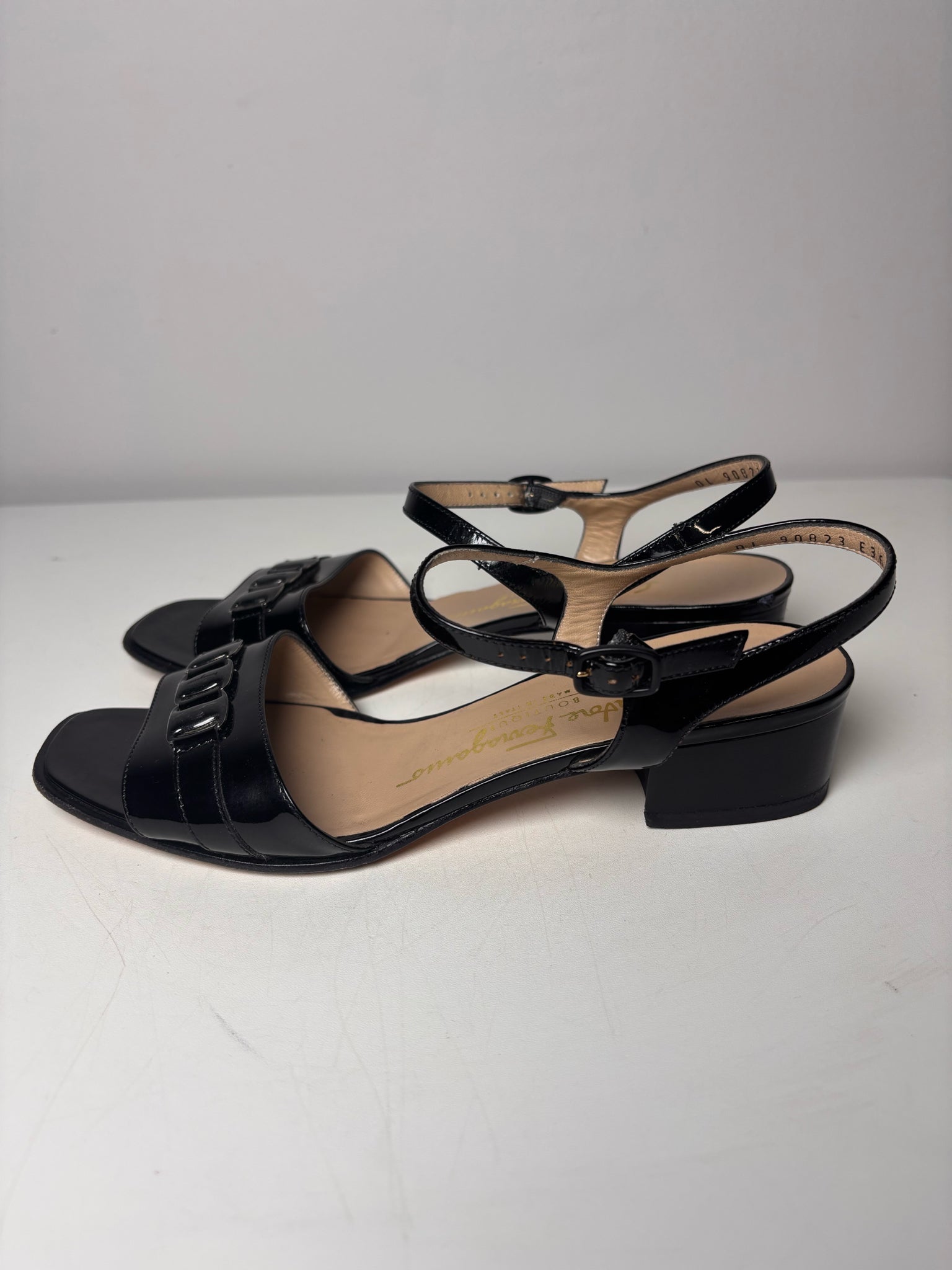 W Shoe Size 6.5 Salvatore Ferragamo Black Patent Leather Heels