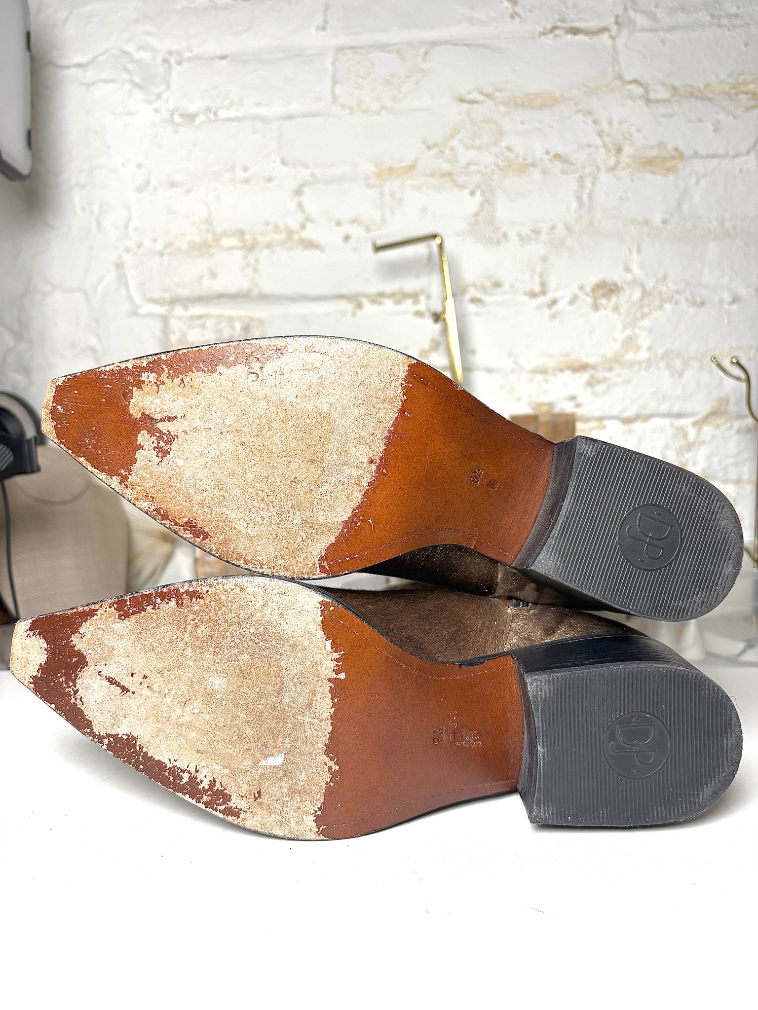 W Shoe Size 8.5 Donald J. Pliner Brown Leather Calf Hair Western Couture Boots