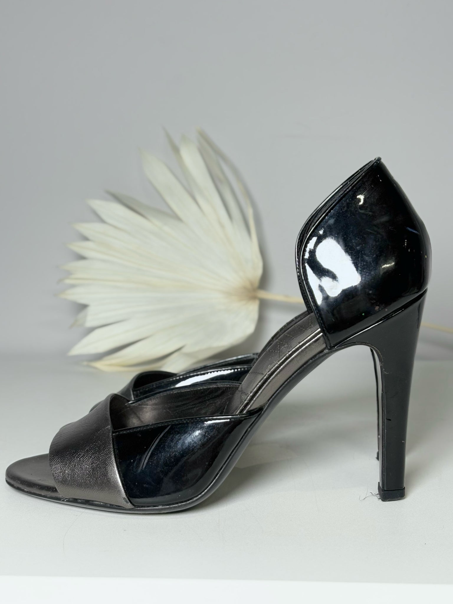 W Shoe Size 8 Gucci Black & Pewter Patent Leather Heels