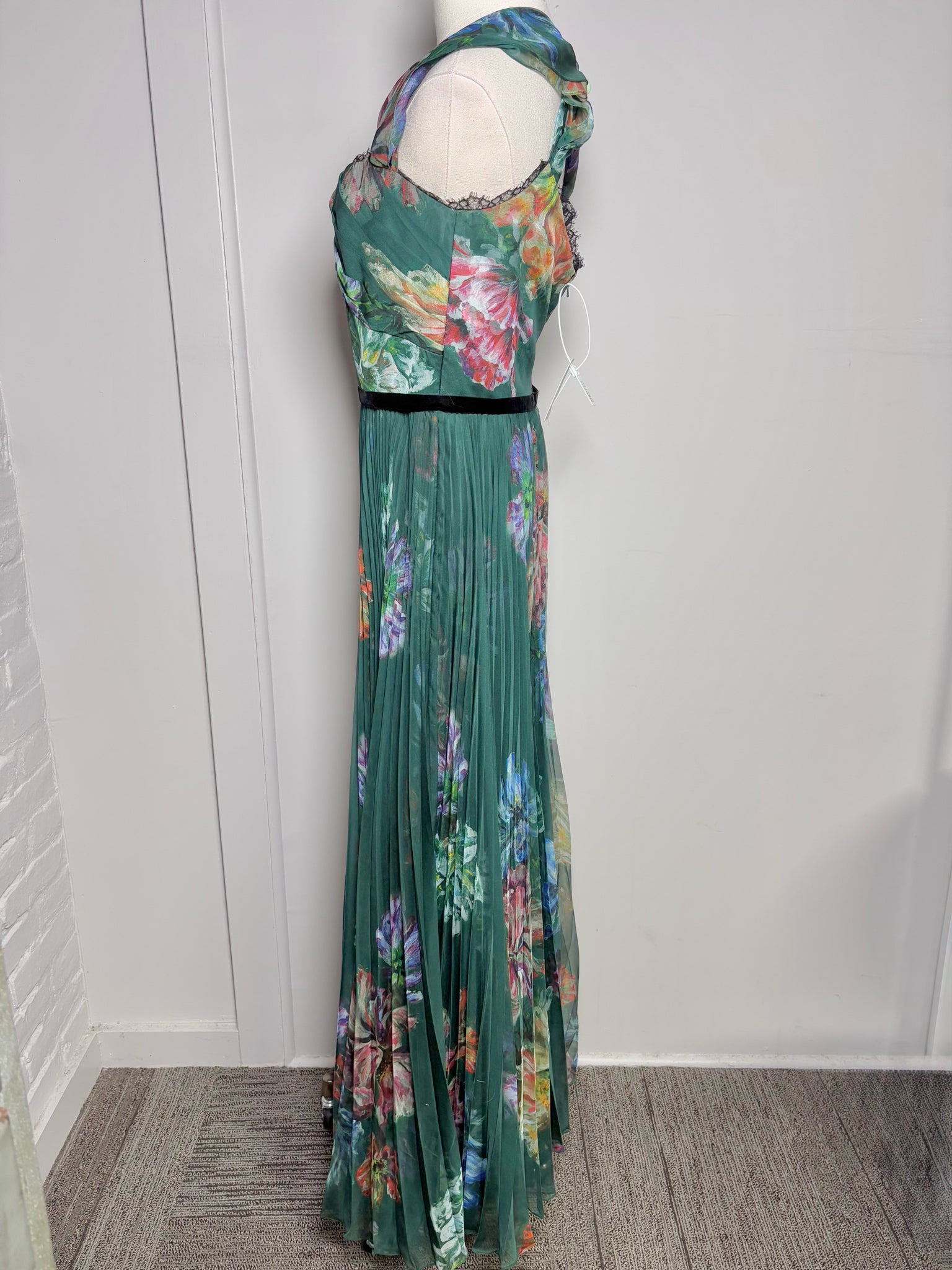 Women Size 10 Marchesa Notte Hunter Green Floral Gown