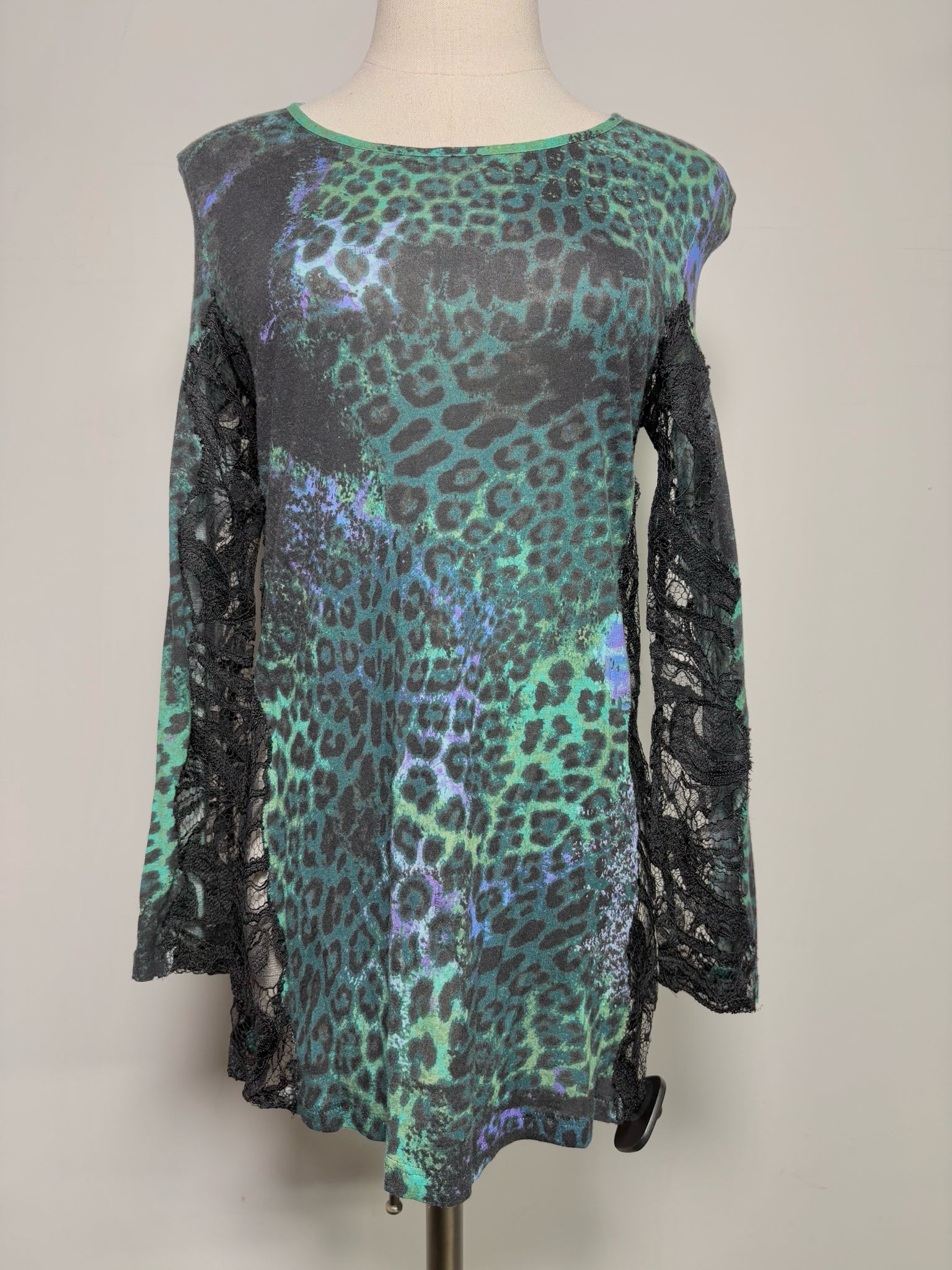 Women Size 12 Emilio Pucci Green Animal Print Lace Shirt