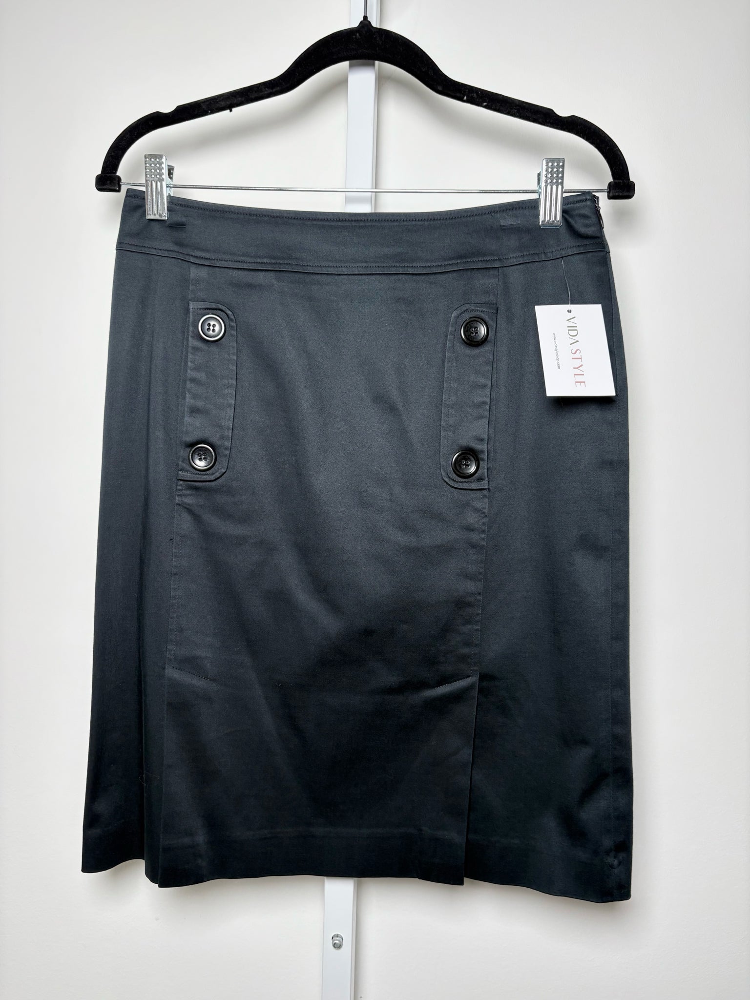 Lafayatte 148 black pencil skirt with decorative buttons in a size 2. Pre-owned.