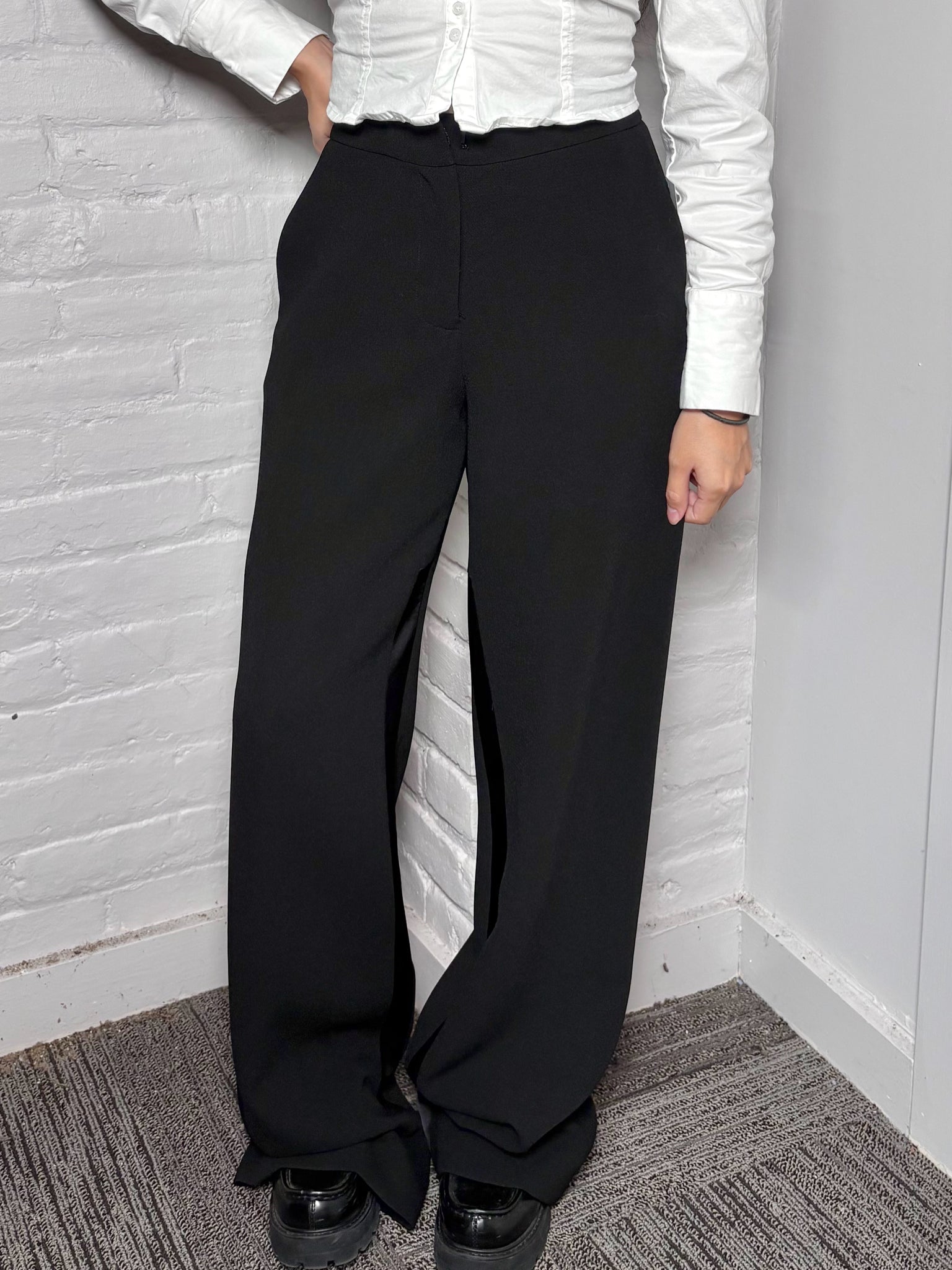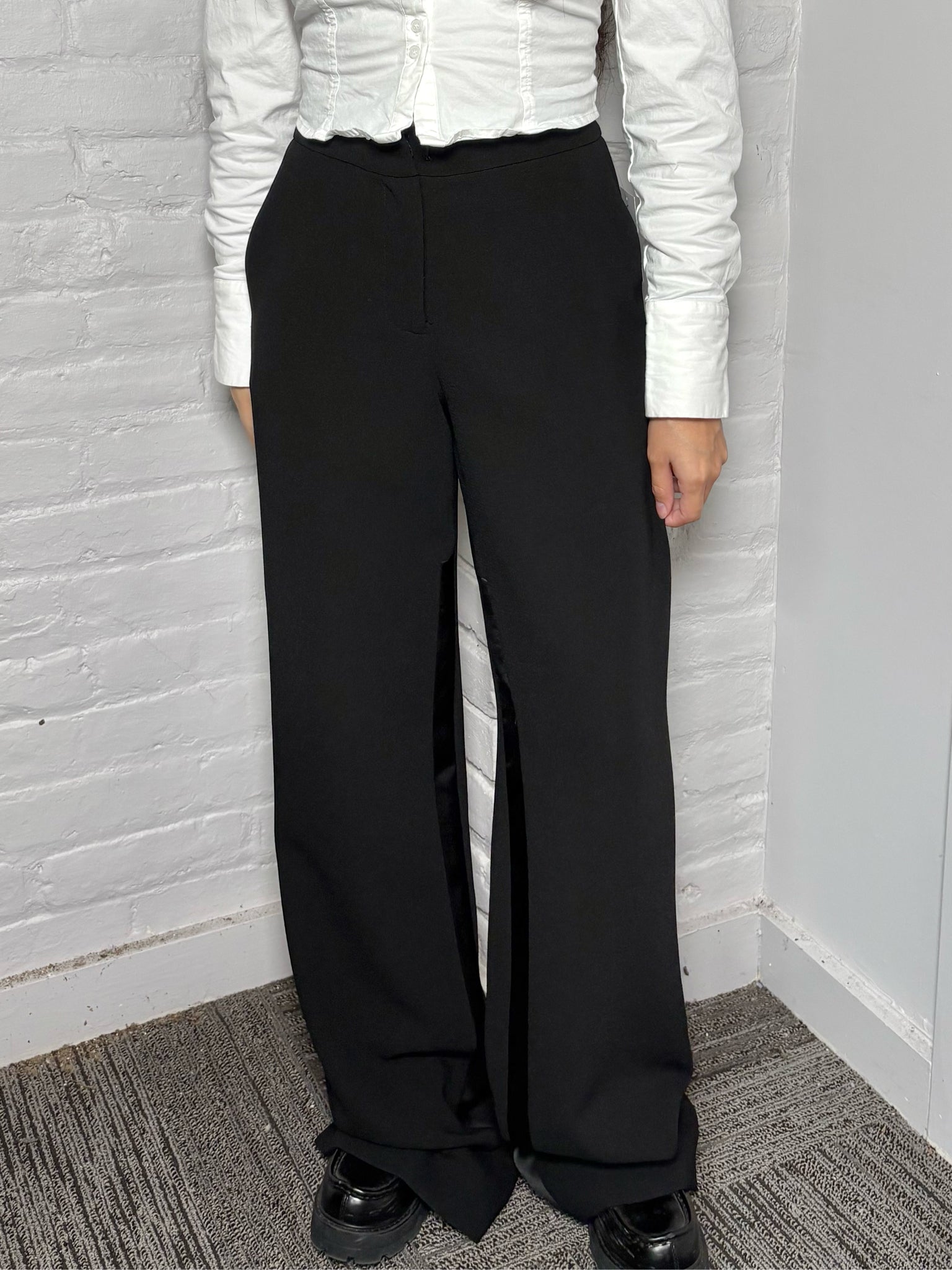 Women Size 2 Prabal Gurung Black Tuxedo Flowy Leg Pants
