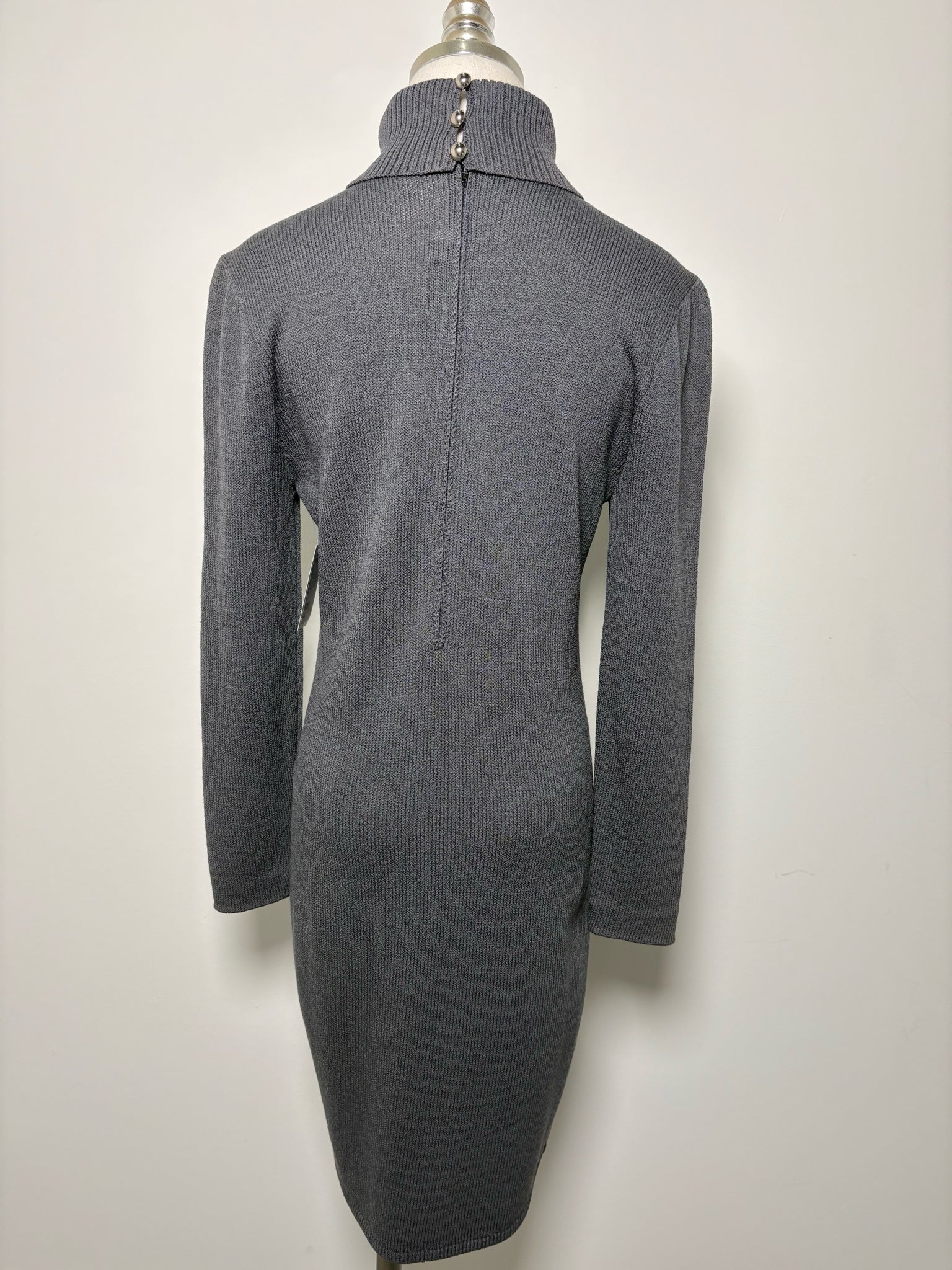 Women Size 2 St. John Gray Solid Wool Pre-owned Dress