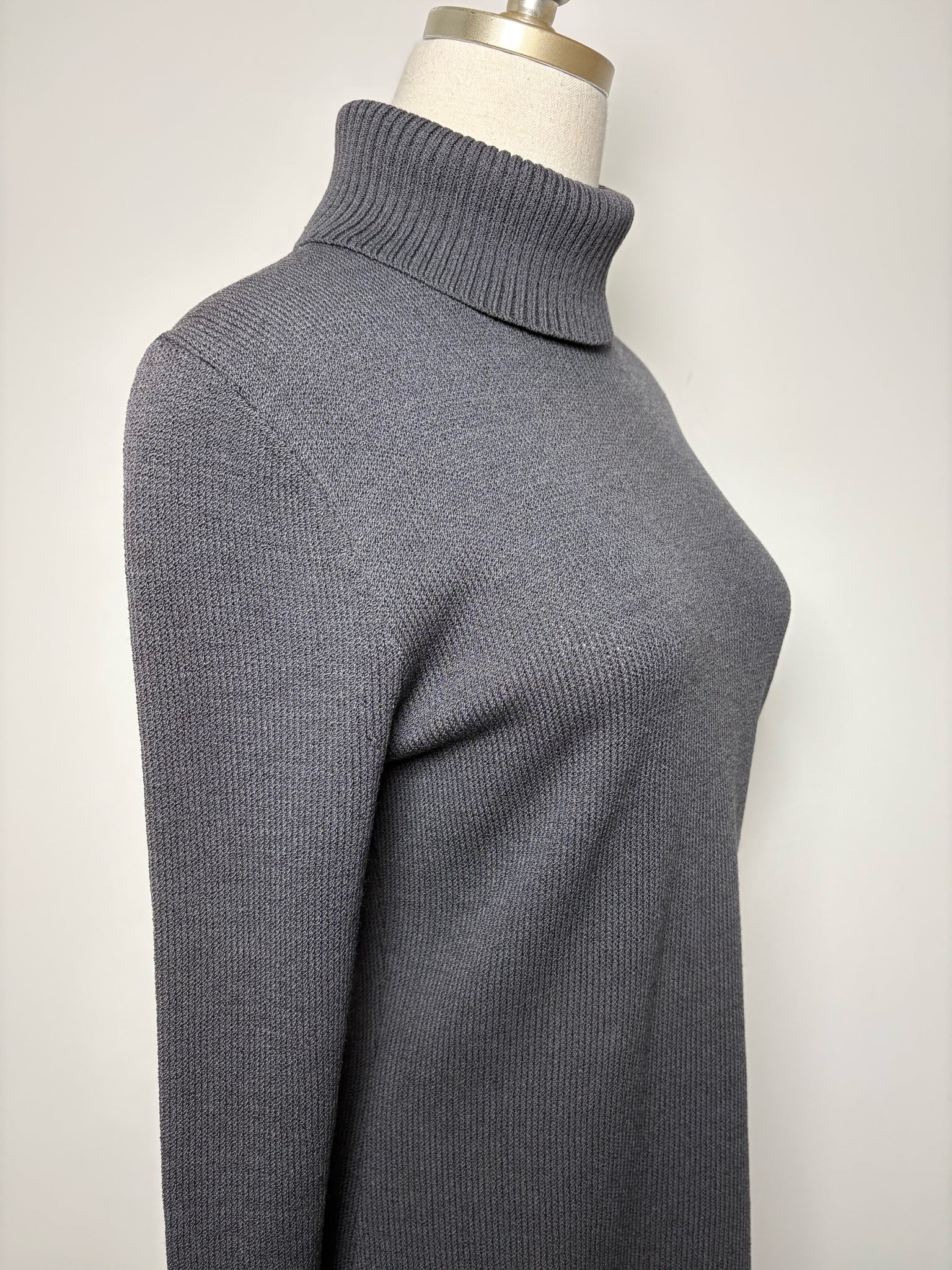 Classic and refined, this St. John gray wool knit midi dress (Size 2) features a long sleeve silhouette crafted in the brand’s signature textured knit for a timeless, tailored look. Priced as is—please refer to photos for condition details. A versatile staple with understated elegance.