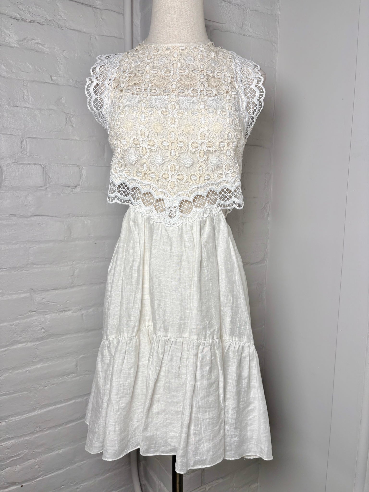 Women Size 36 Sandro White Crochet Not Vintage Dress
