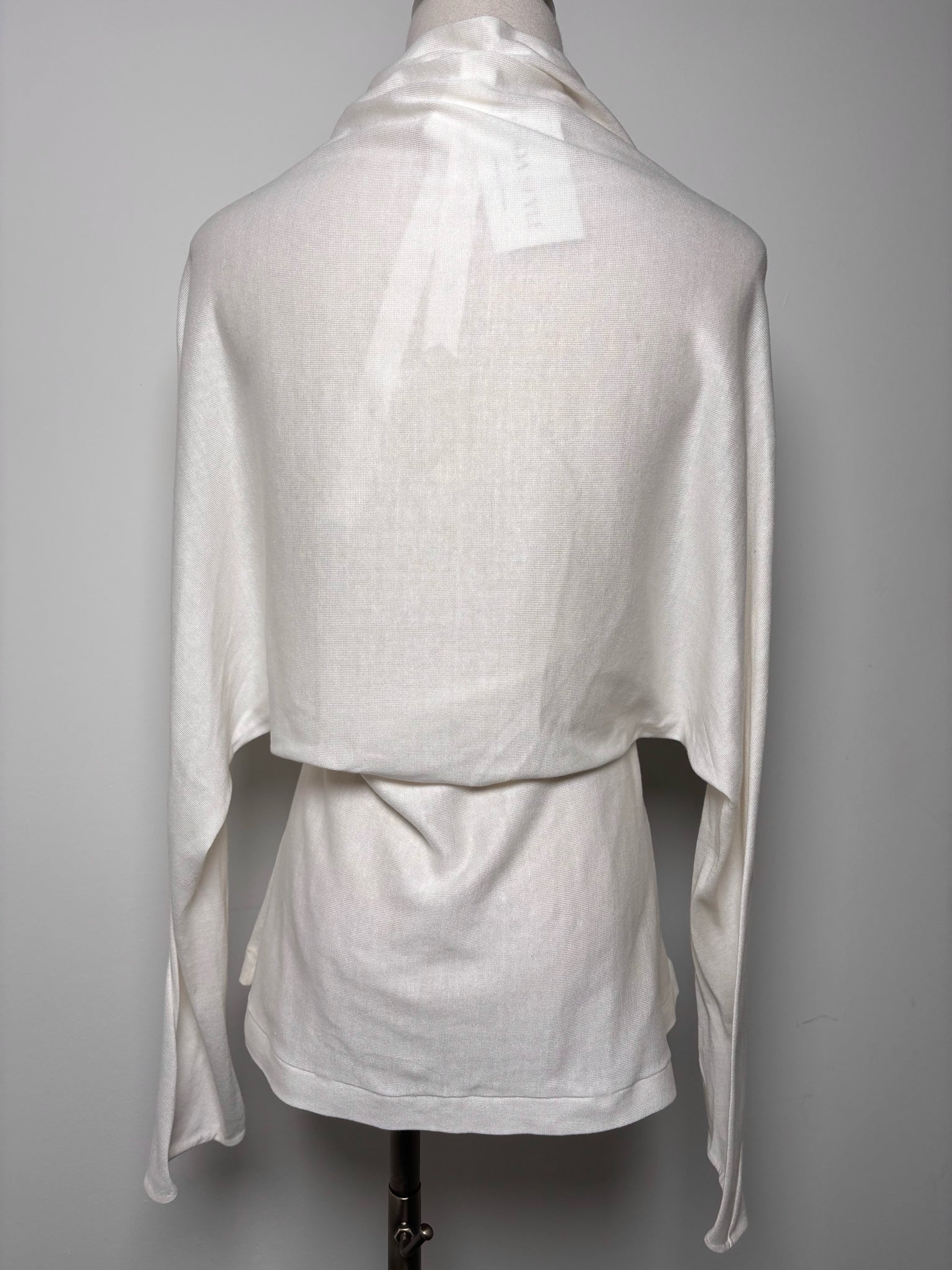 Angelos Figus white dolman long sleeves v-neck shirt that has a a fitted bodice and drapes at the back in a size 2.
