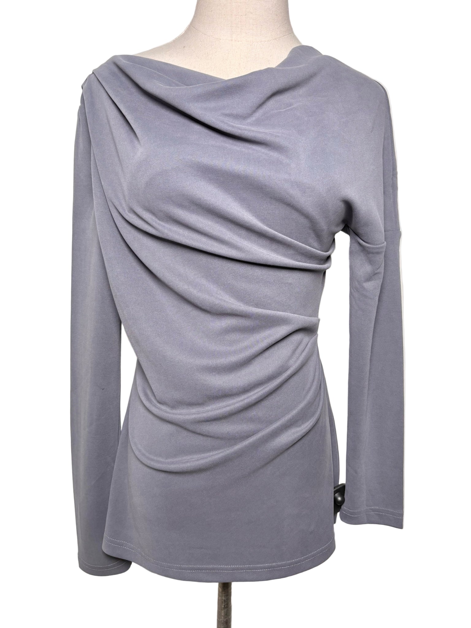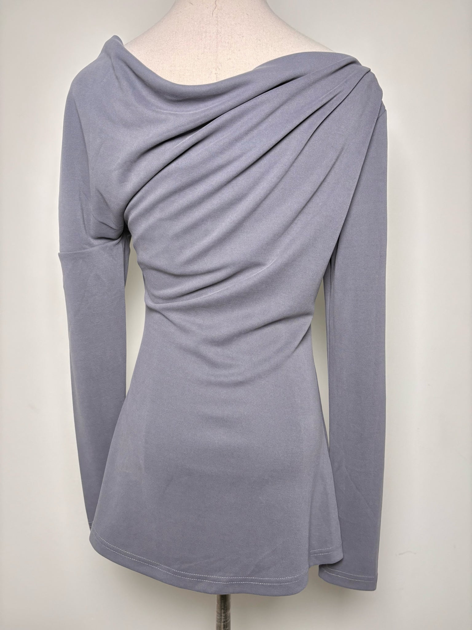 Acler Noble Charcoal Draped Neckline Stretch Top with Side Pleats – Size 4 (NWT)