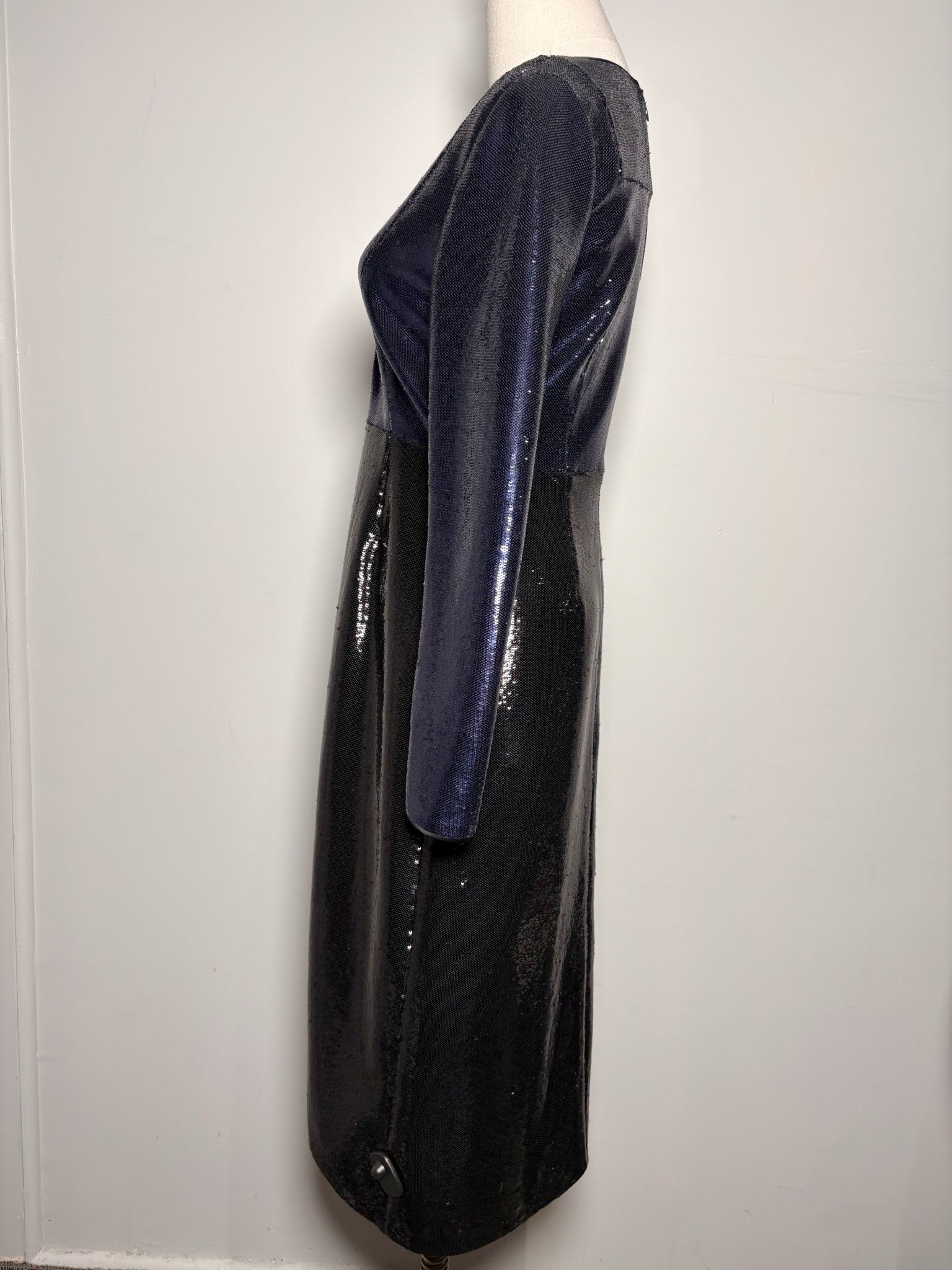 Women Size 4 Diane Von Furstenberg Blue, Black Sequins Cocktail Dress