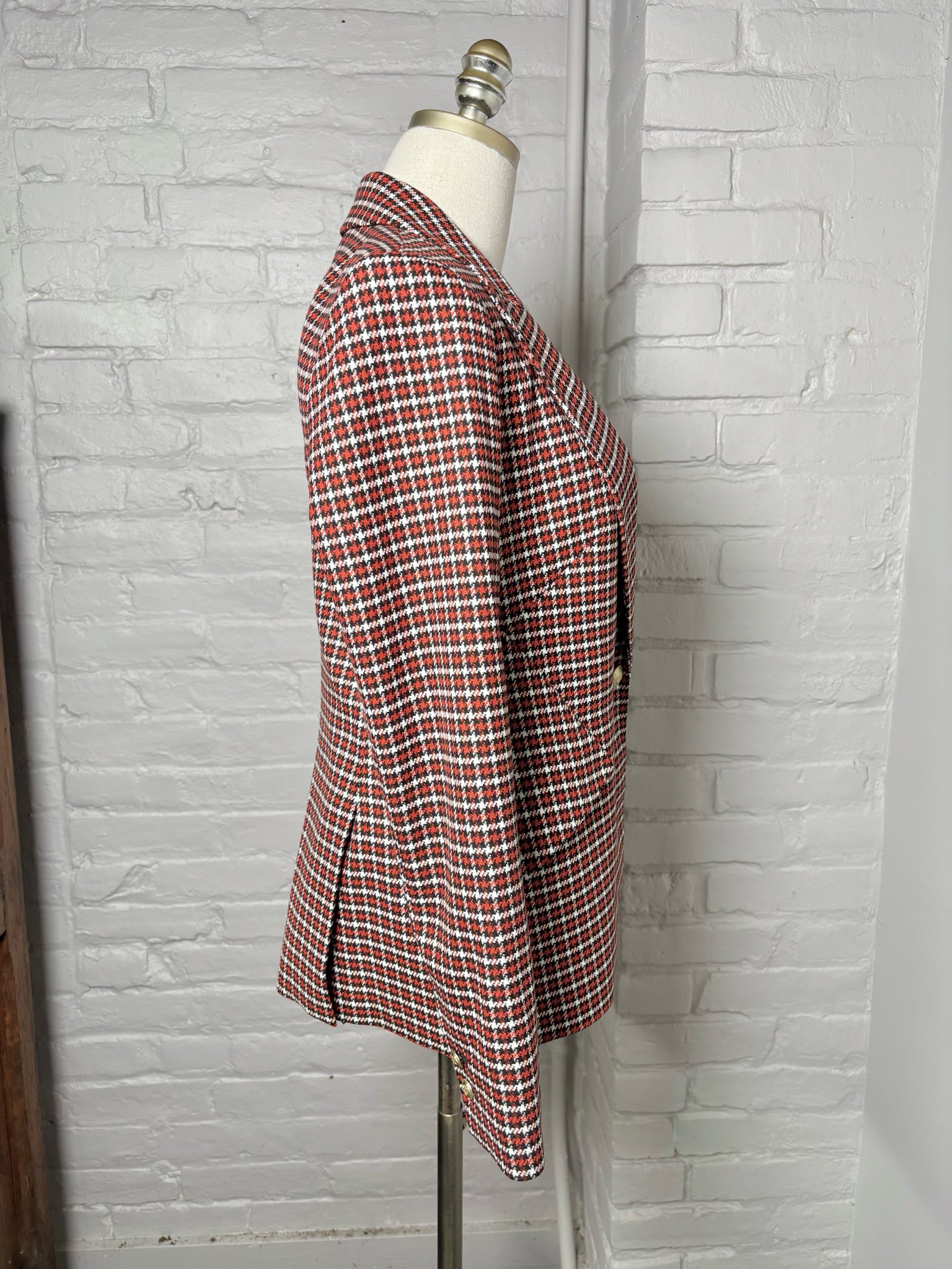 Women Size 4 L'Agence Black, White, Red Houndstooth Blazer