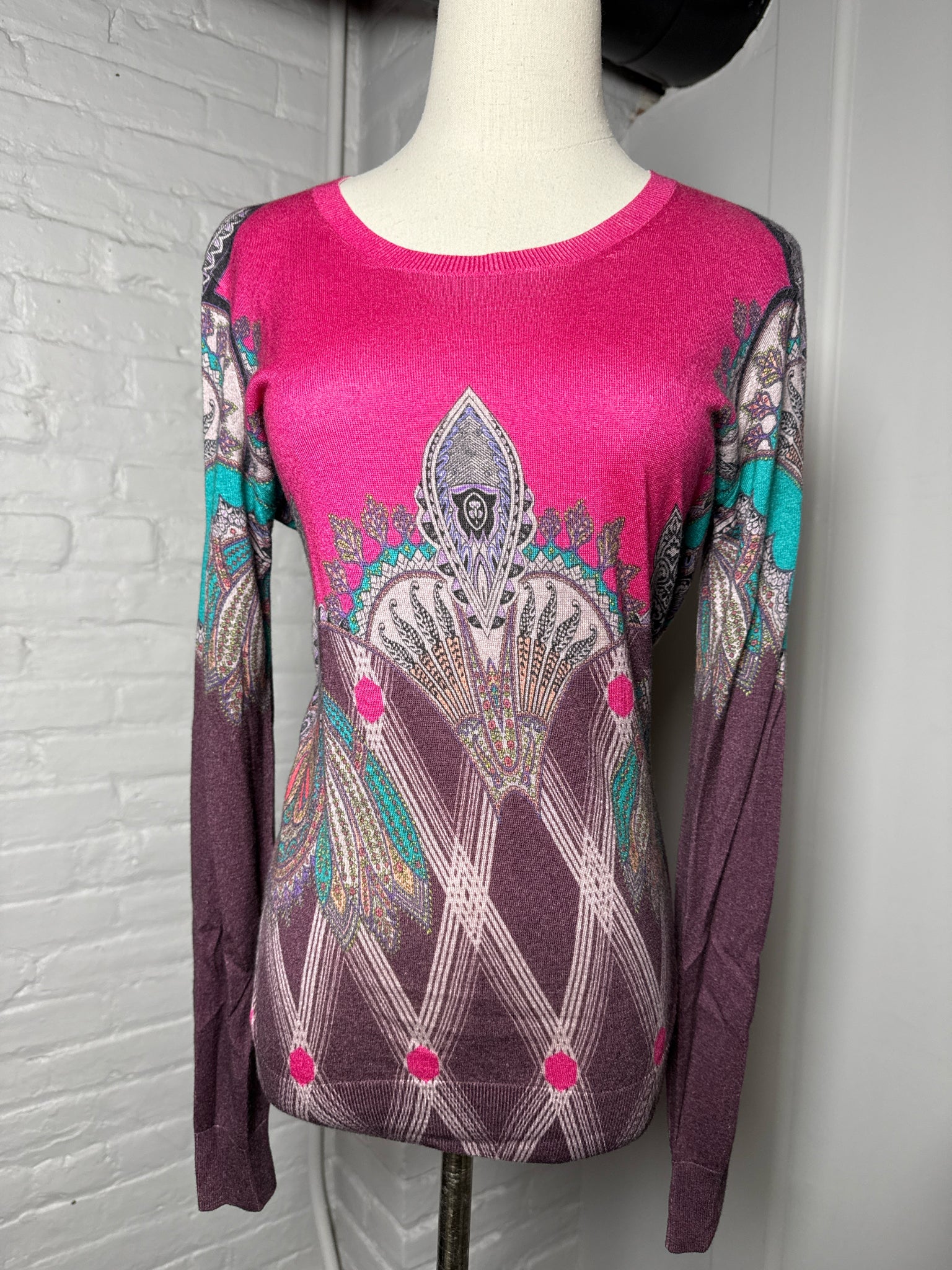 Women Size 44 Etro Pink Multi-Print 55% Silk 45% Cashmere Sweater