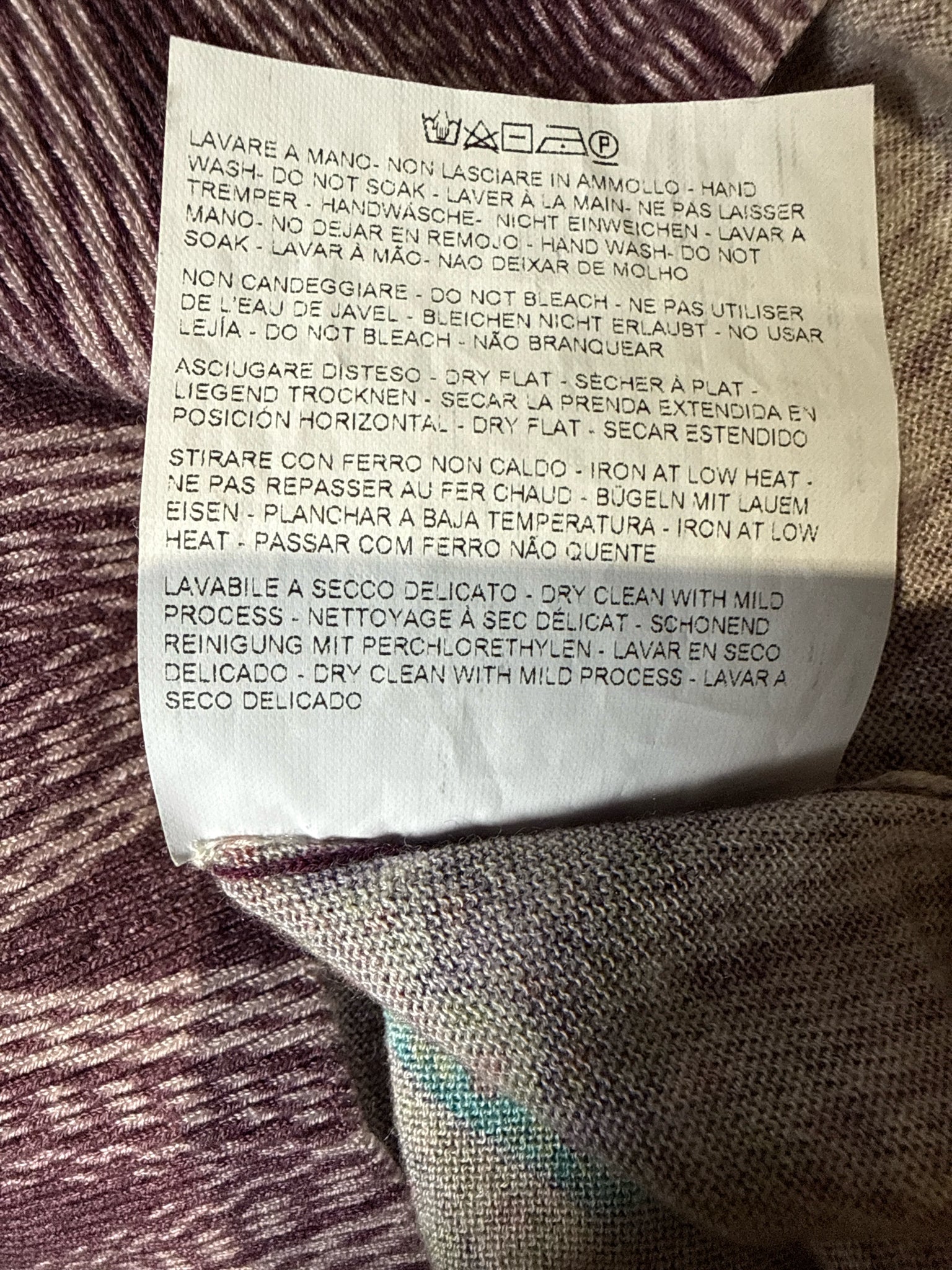 cashmere/silk blend scoop neck fuchsia w/multi-print long sleeves//gw/w