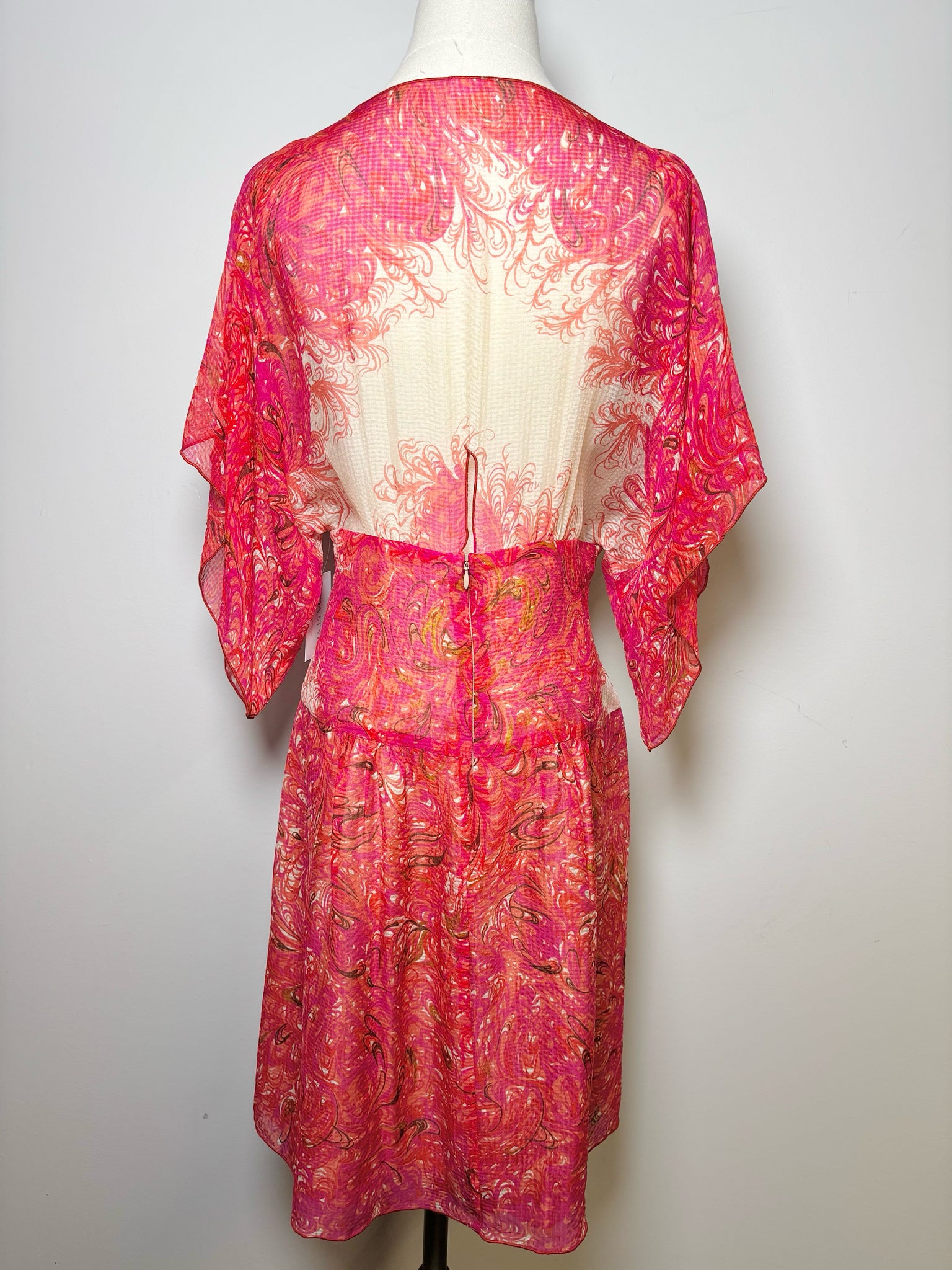 Anna Sui pink and cream print flowy silk dress with drape sleeves. Priced as-is. Pre-owned.