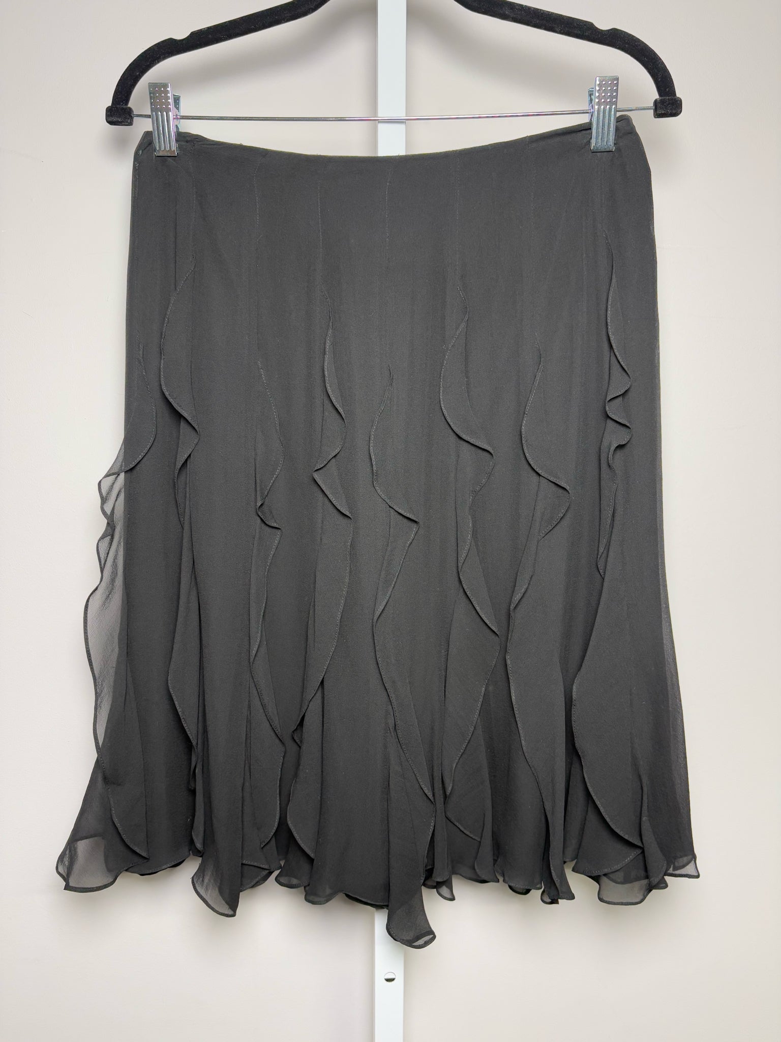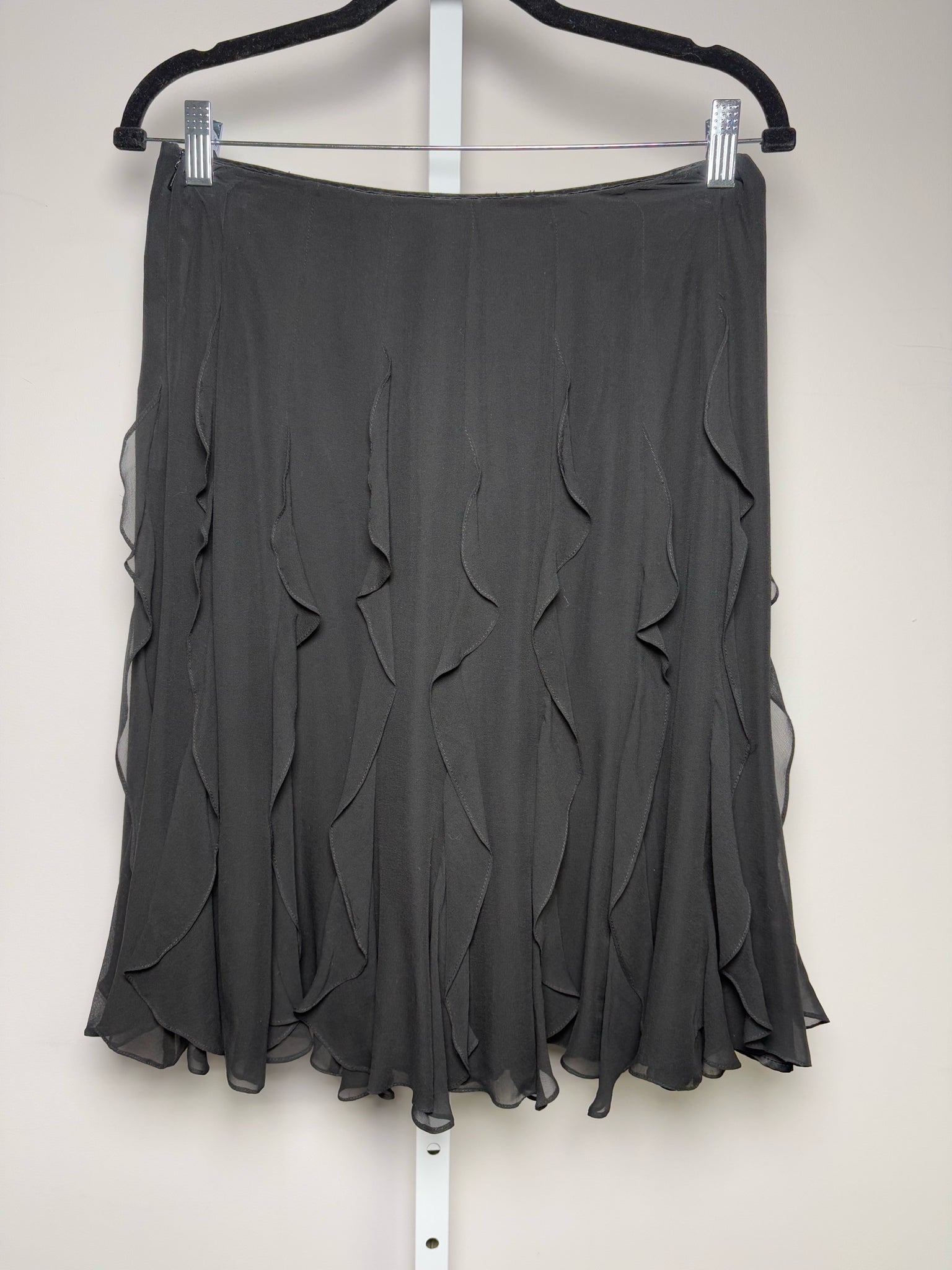 Vintage Carmen Marc Valvo black silk ruffle skirt in a size 6.
