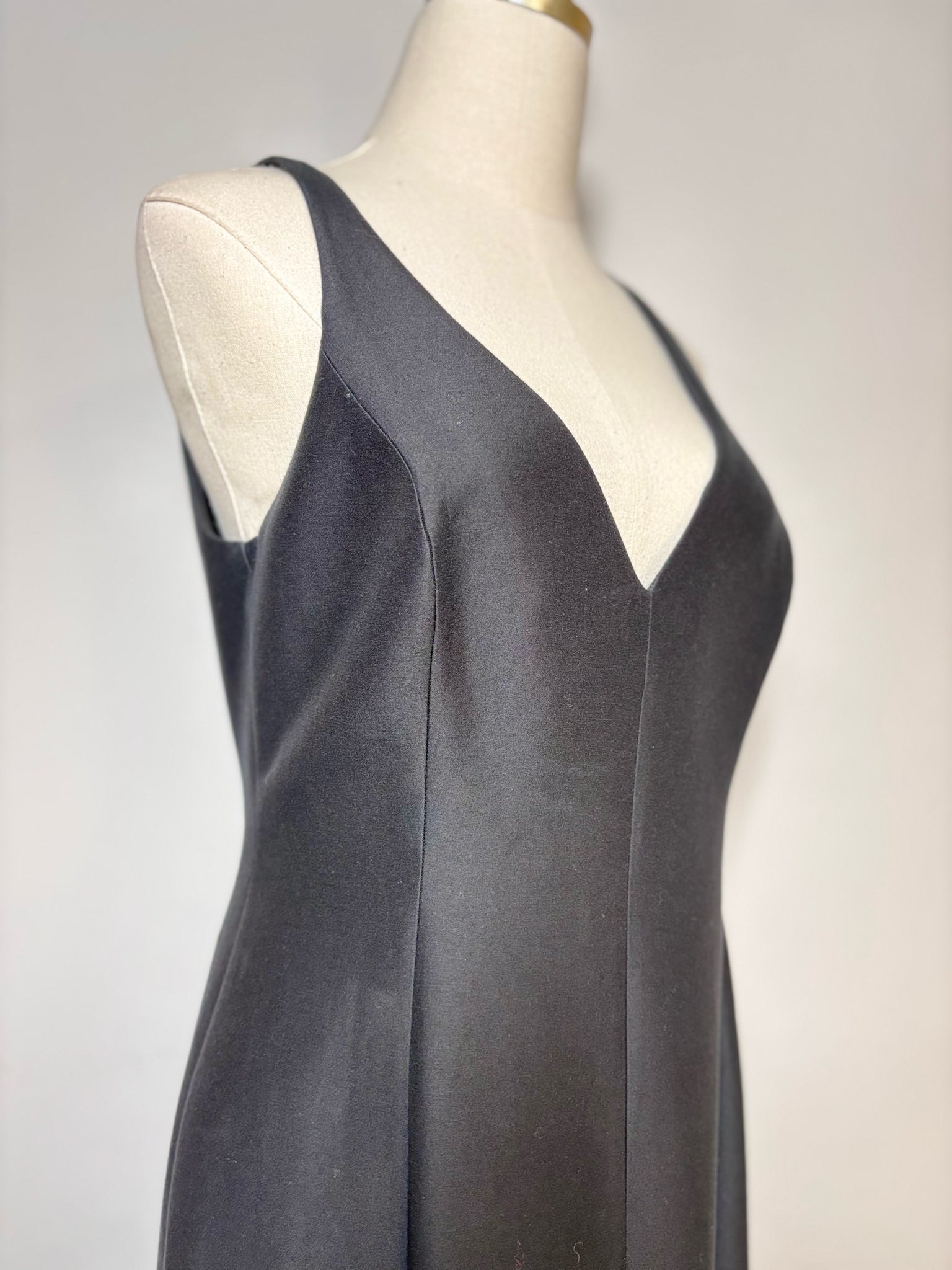 Halston Heritage black cotton and silk ball low v-neck sleeveless fully lined ball gown. Pre-owned.