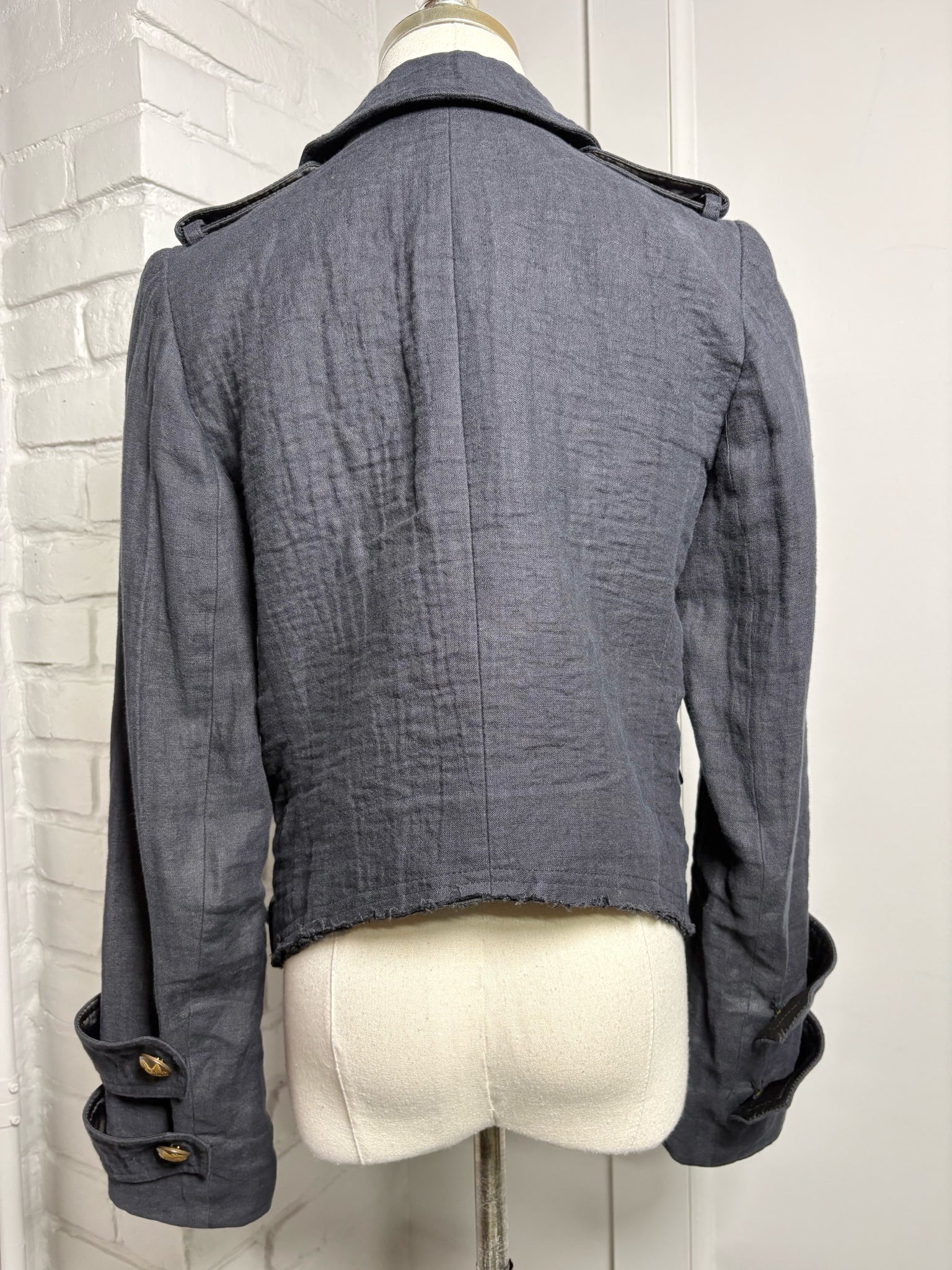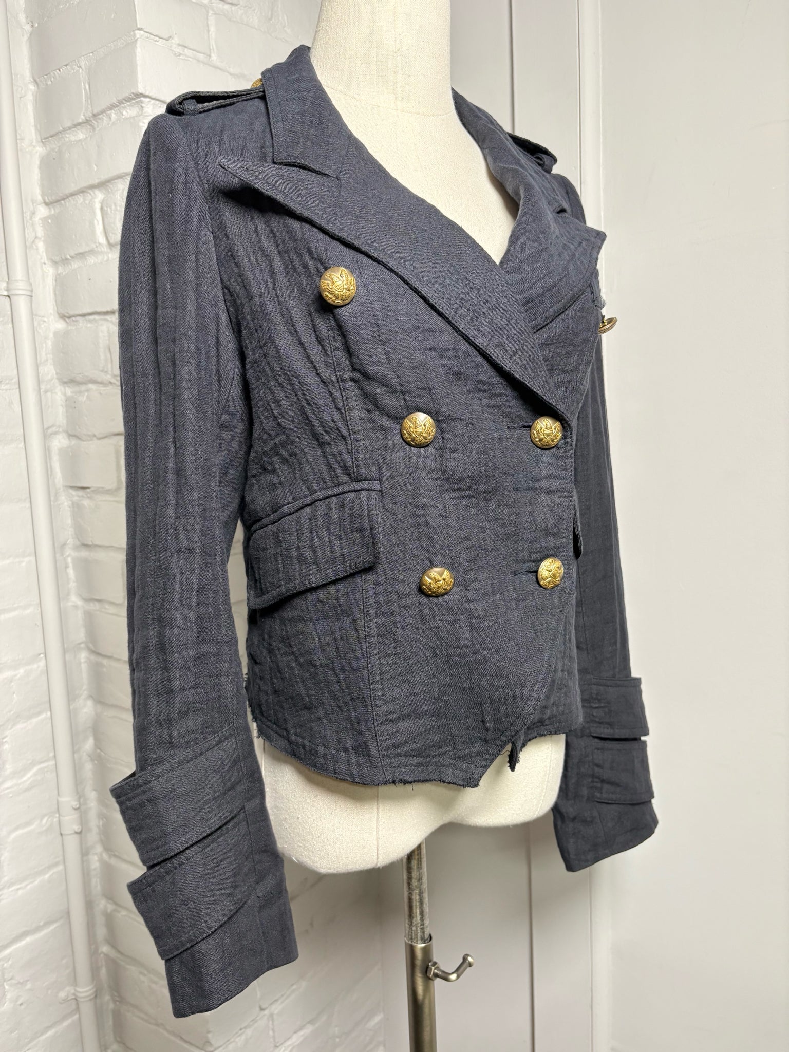 Smythe black cotton and linen jacket with gold buttons in a size 6.