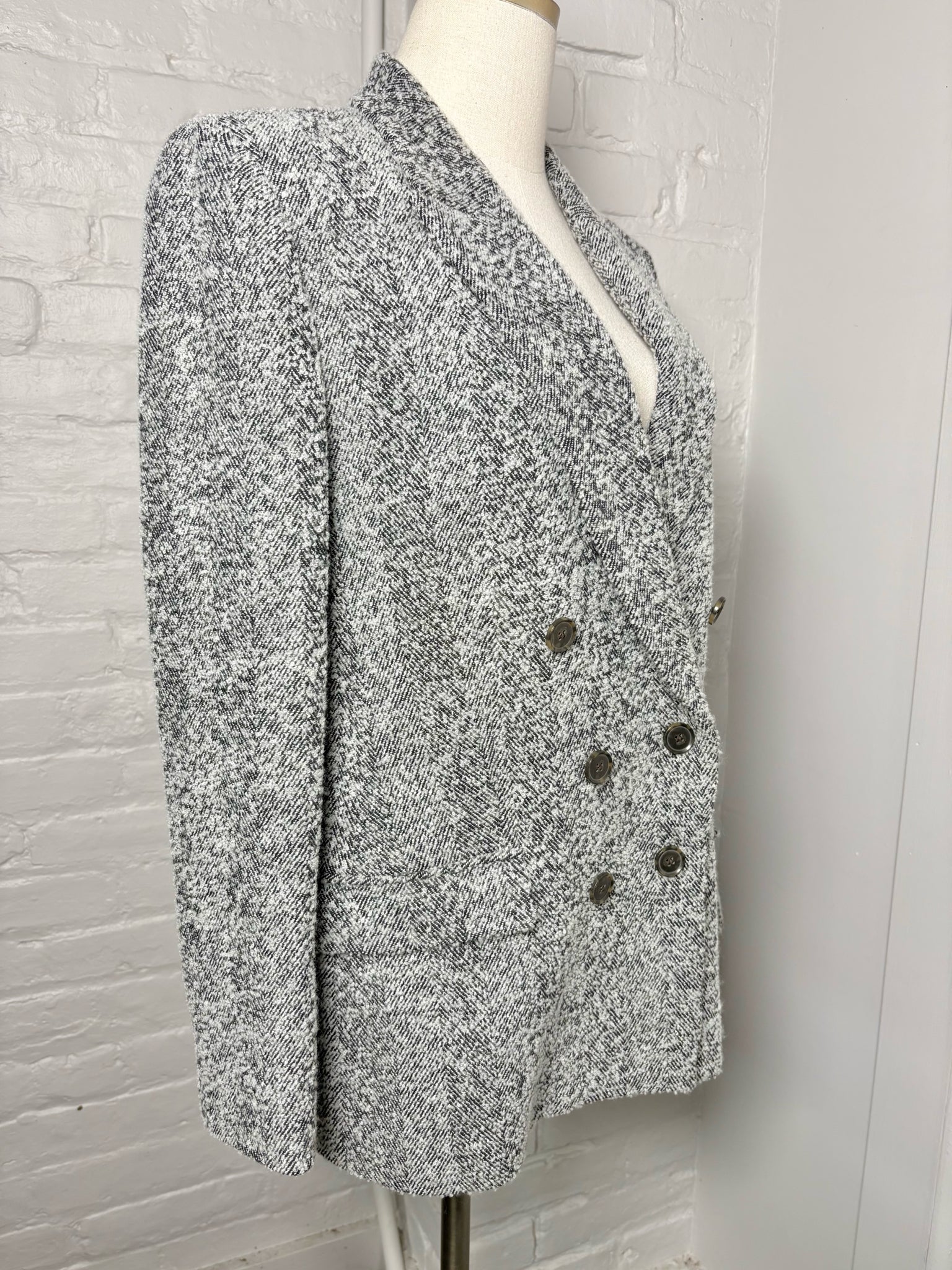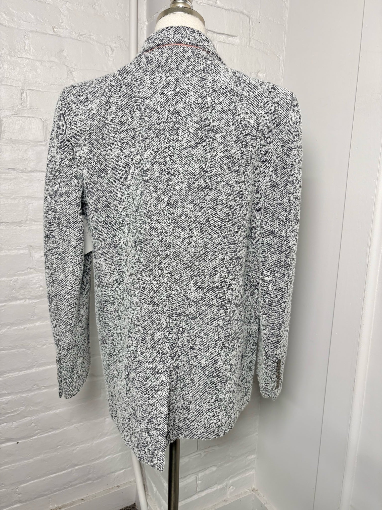 Tailored from Italian flecked herringbone, this gray-black J.Crew blazer features a relaxed, double-breasted silhouette and is fully lined for a refined finish. A timeless layer that balances structure and ease—perfect for polished, effortless styling. Pre-Owned.