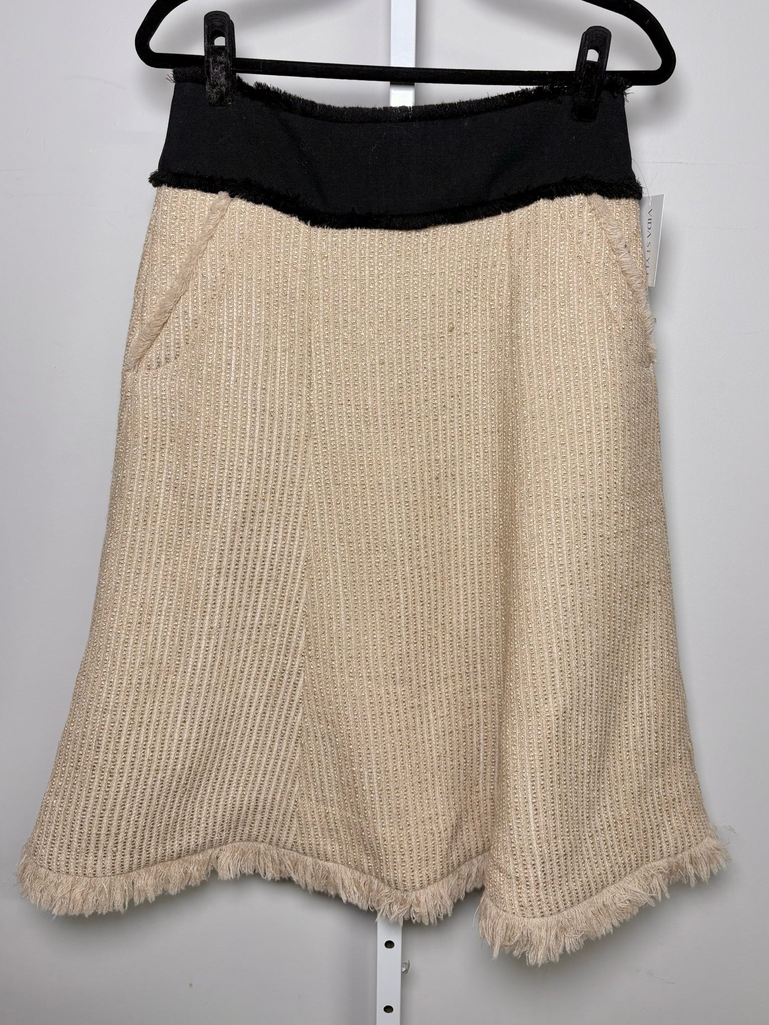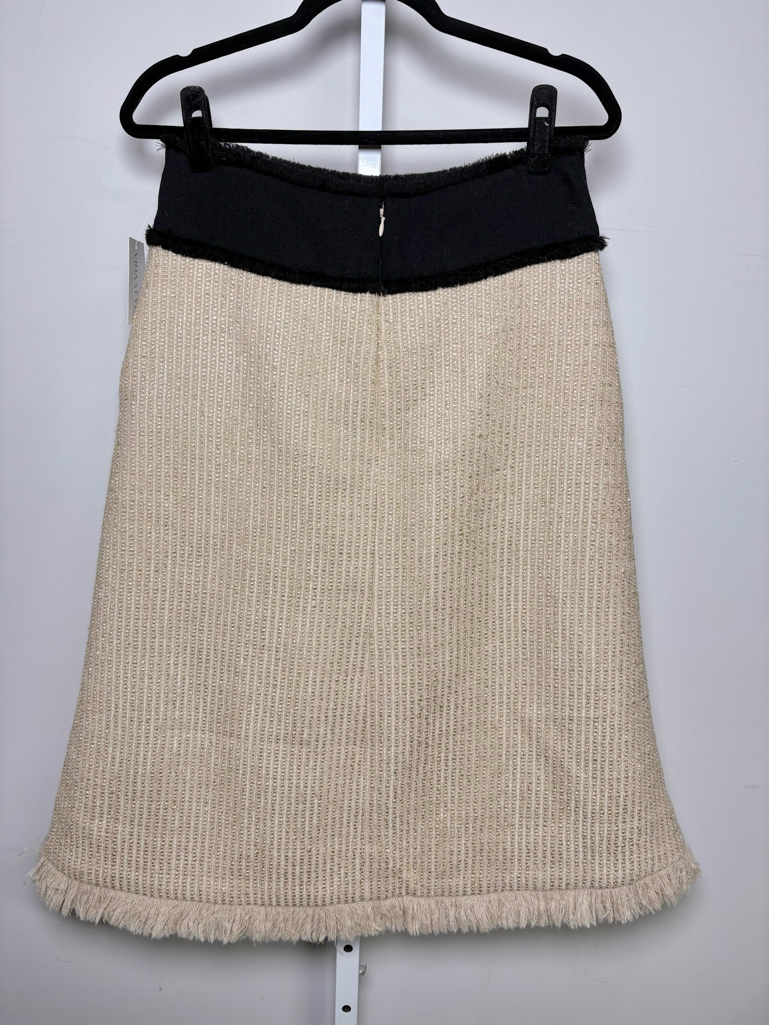 Tory Burch cream, a line tweed fringe skirt with metallic gold and a black waist band in a size 8.