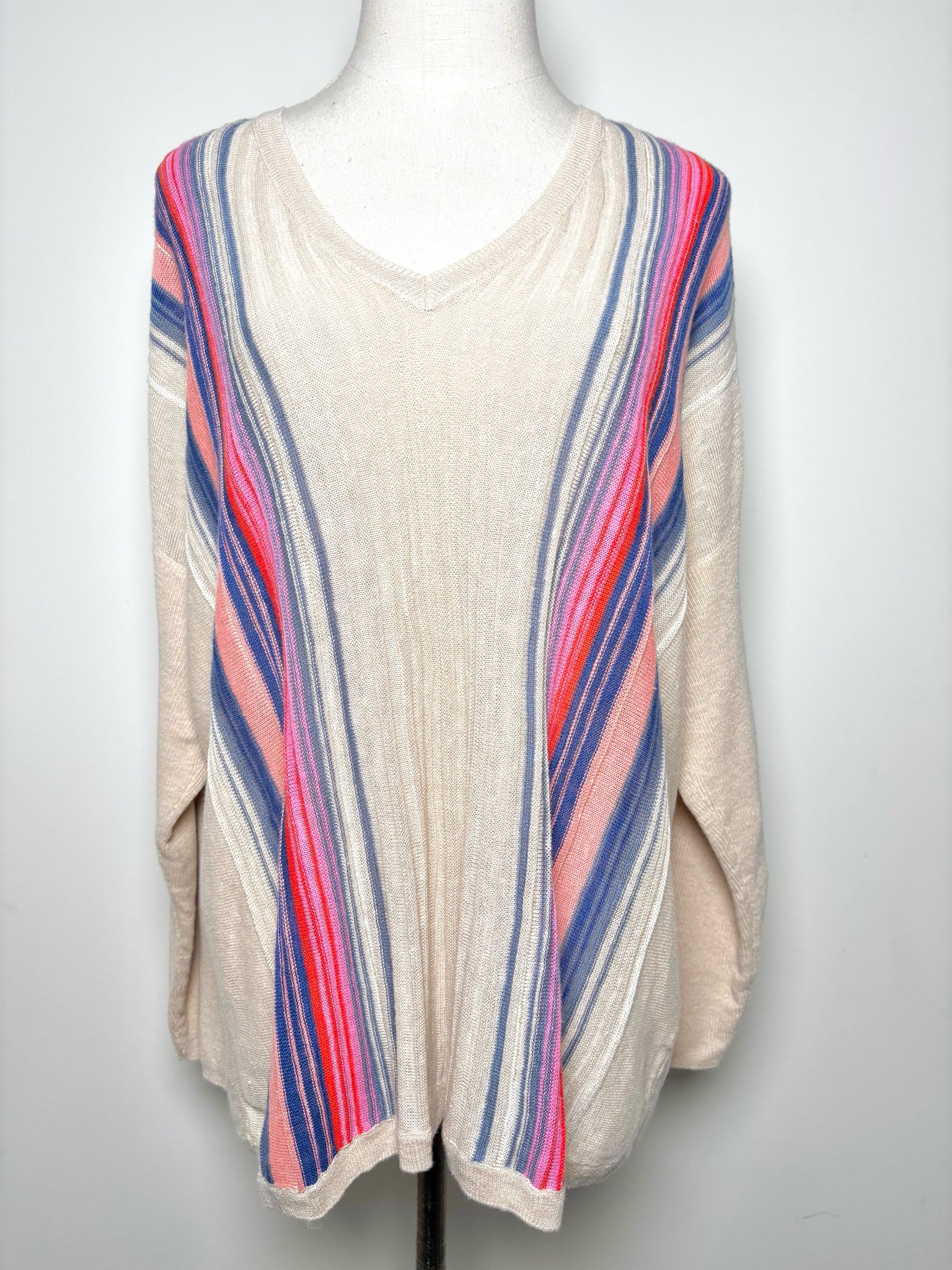 Gerard Darel beige, blue and pink striped linen pullover sweater in a size large. Comes new with tags.