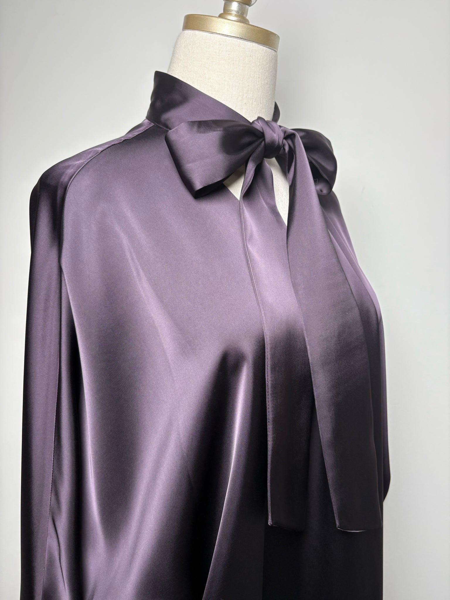 - Relaxed fit with v-neck and self-tie neckline