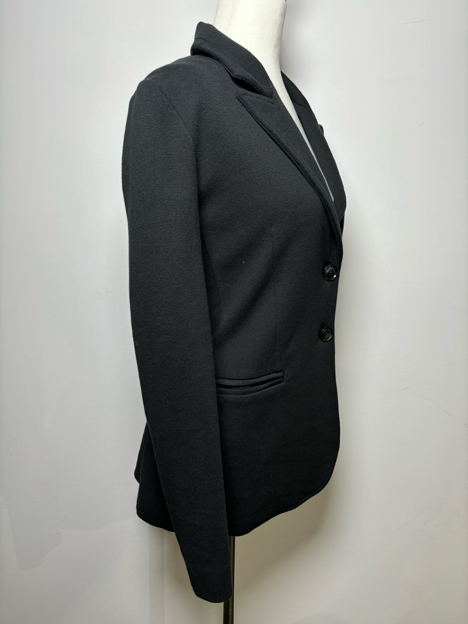 Amina Rubinacci by Donna Lewis black wool blend knit coat with two button closure. Made in Italy.