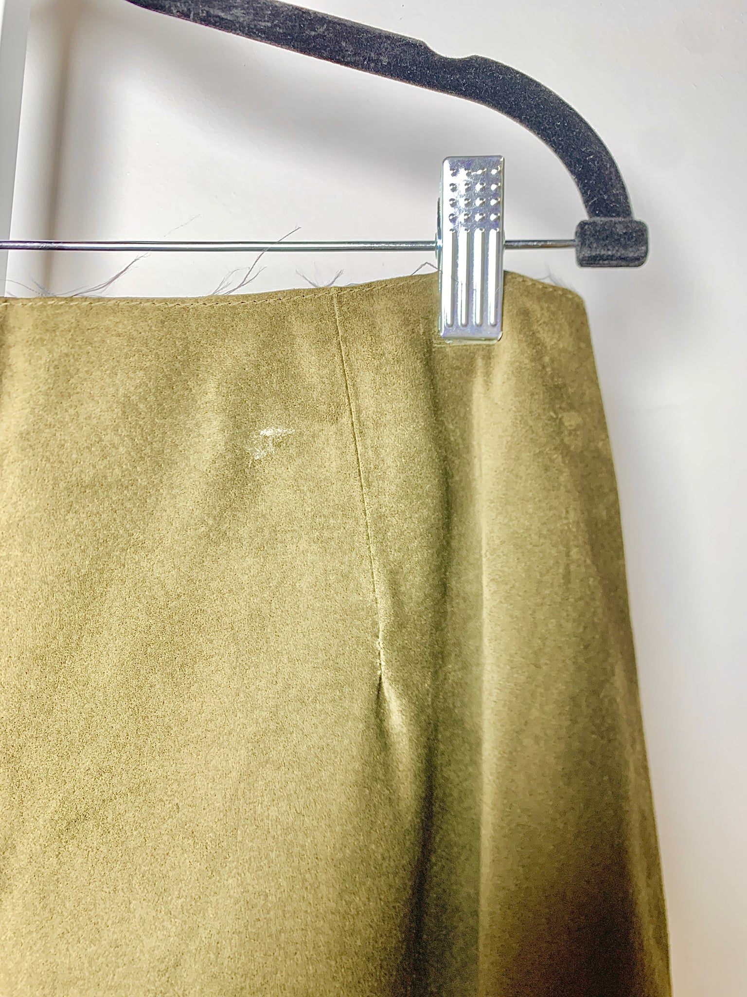 Ann Mashburn forest green suede leather a-line skirt with front pockets and side zipper. Priced as-is. Pre-owned.