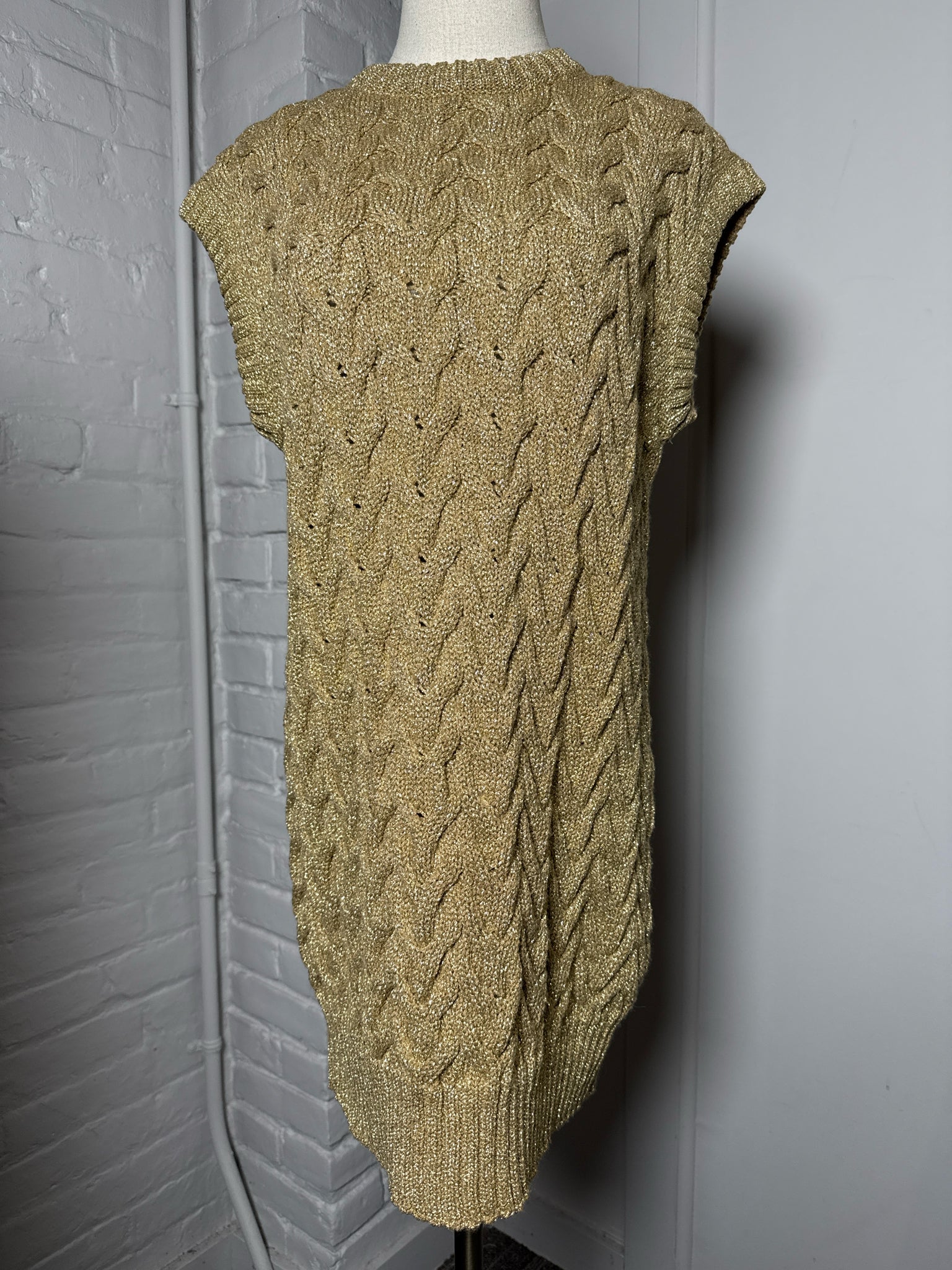 cable-knit metallic gold w/stretch sleeveless mid-length//dnd/w