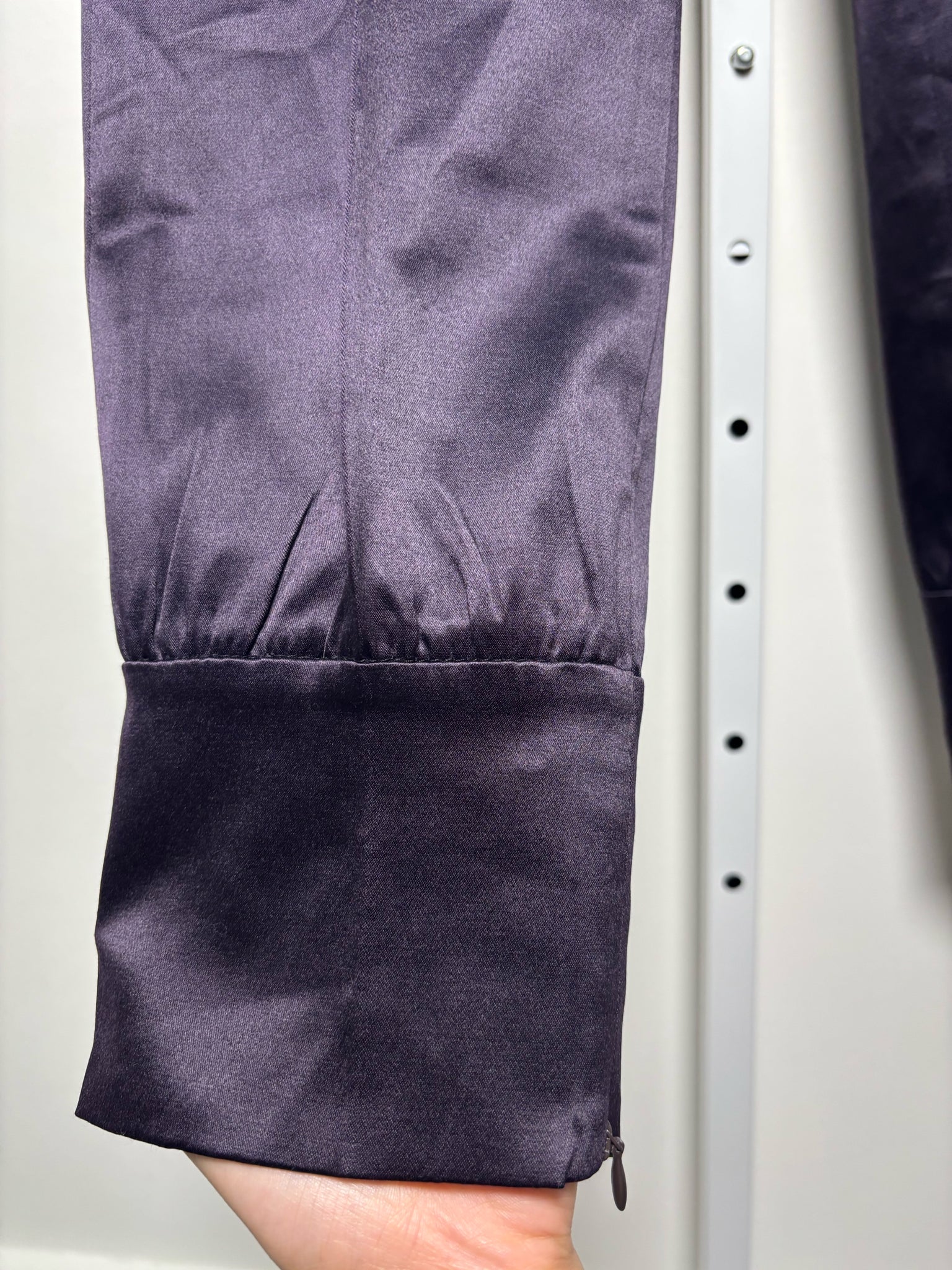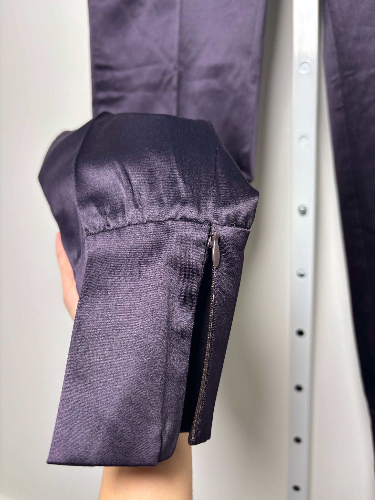 Elevate your street-to-chic game with these made in Italy purple satin special occasion pants. Featuring a luxe sheen, tailored ankle zip detail, and a flattering fit, they blend laid-back edge with evening elegance—perfect for fashion-forward looks from day to night. Dress it up or dress it down, the possibilities are endless! Comes in a size Medium.