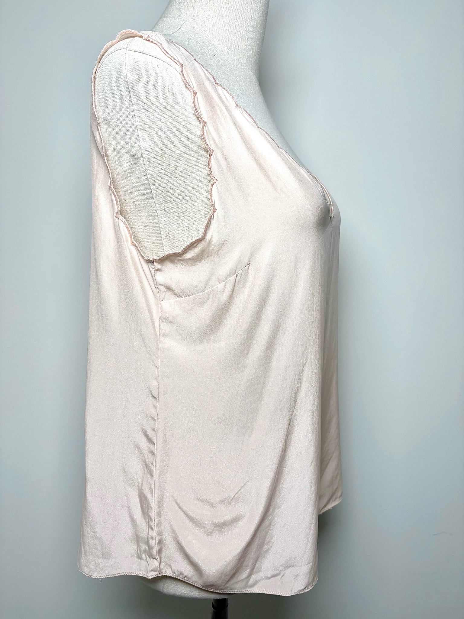 Rebecca Taylor pink 100% silk semi sheer blouse with a scallop edge detail neckline in a size medium.