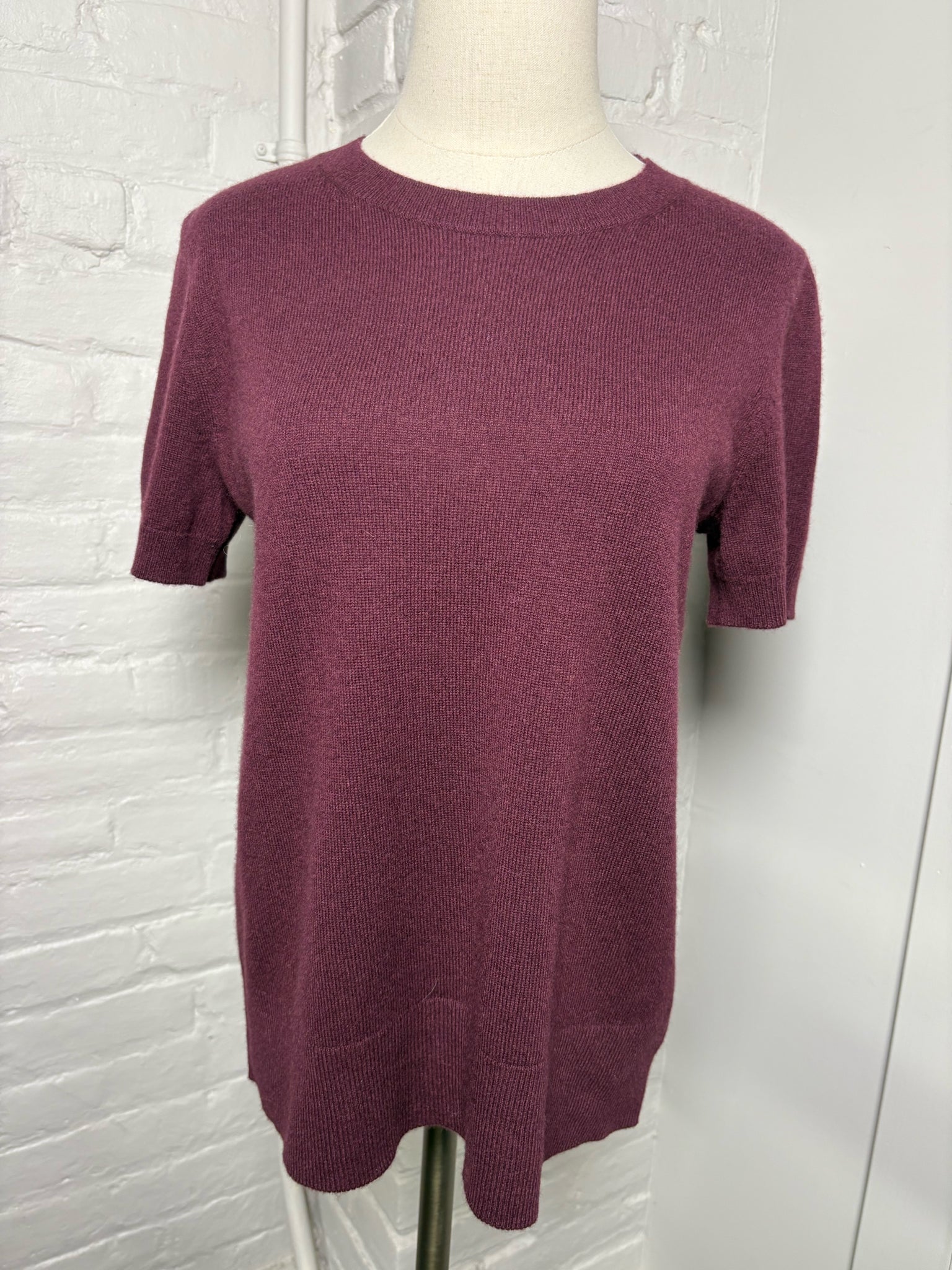 Theory dark plum cashmere short sleeve sweater in a size medium.