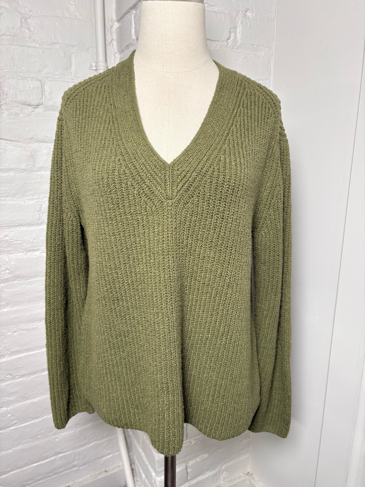 Vince dark green v neck ribbed cotton knit sweater in a size medium.