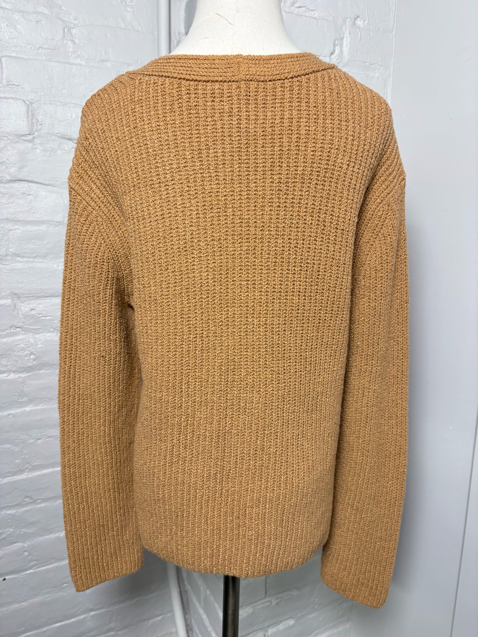 Vince tan ribbed v neck cotton knit sweater in a size medium.