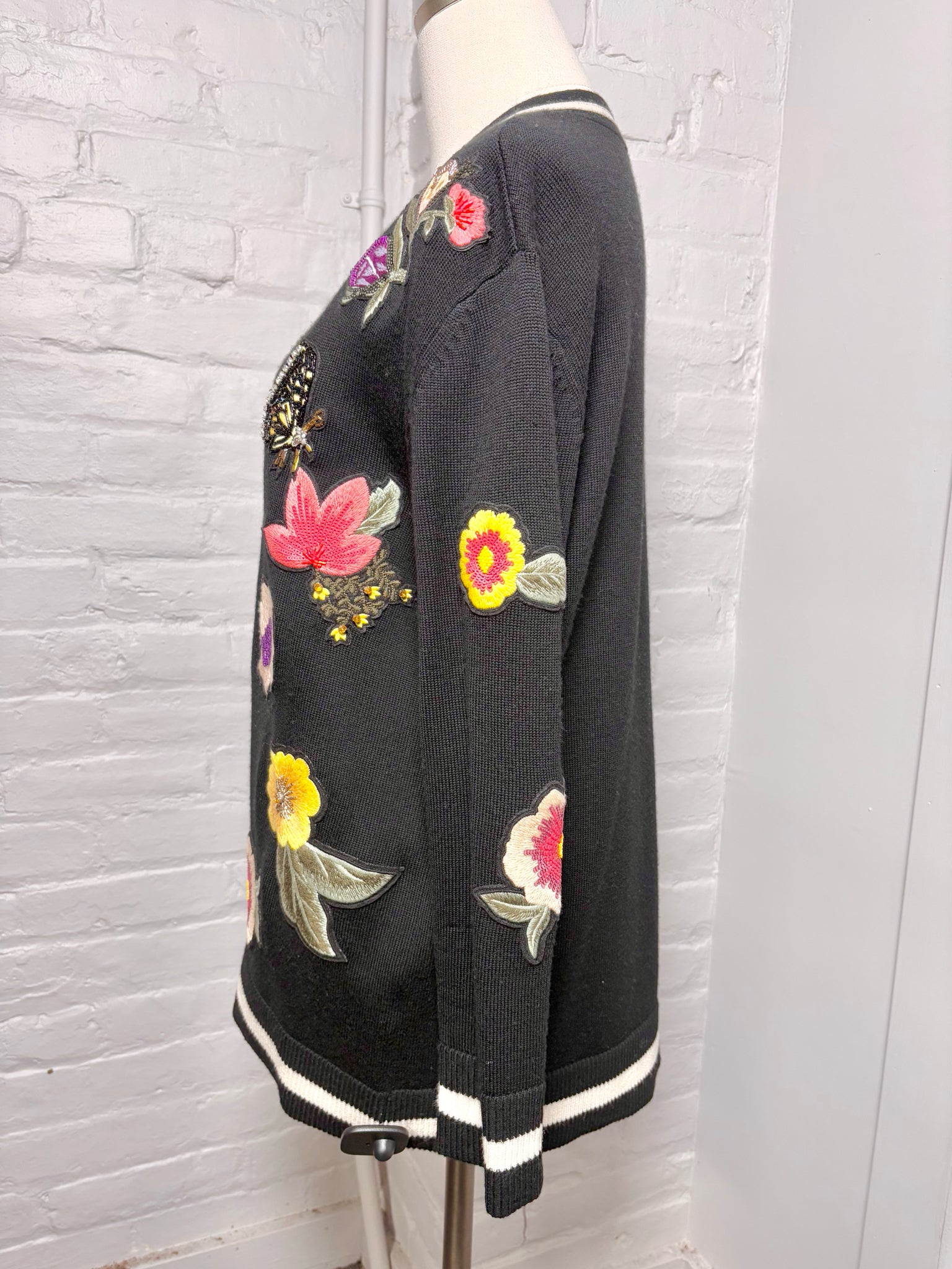 Women Size S Alice + Olivia Black Embroidered, Beads Embelllishments Sweater