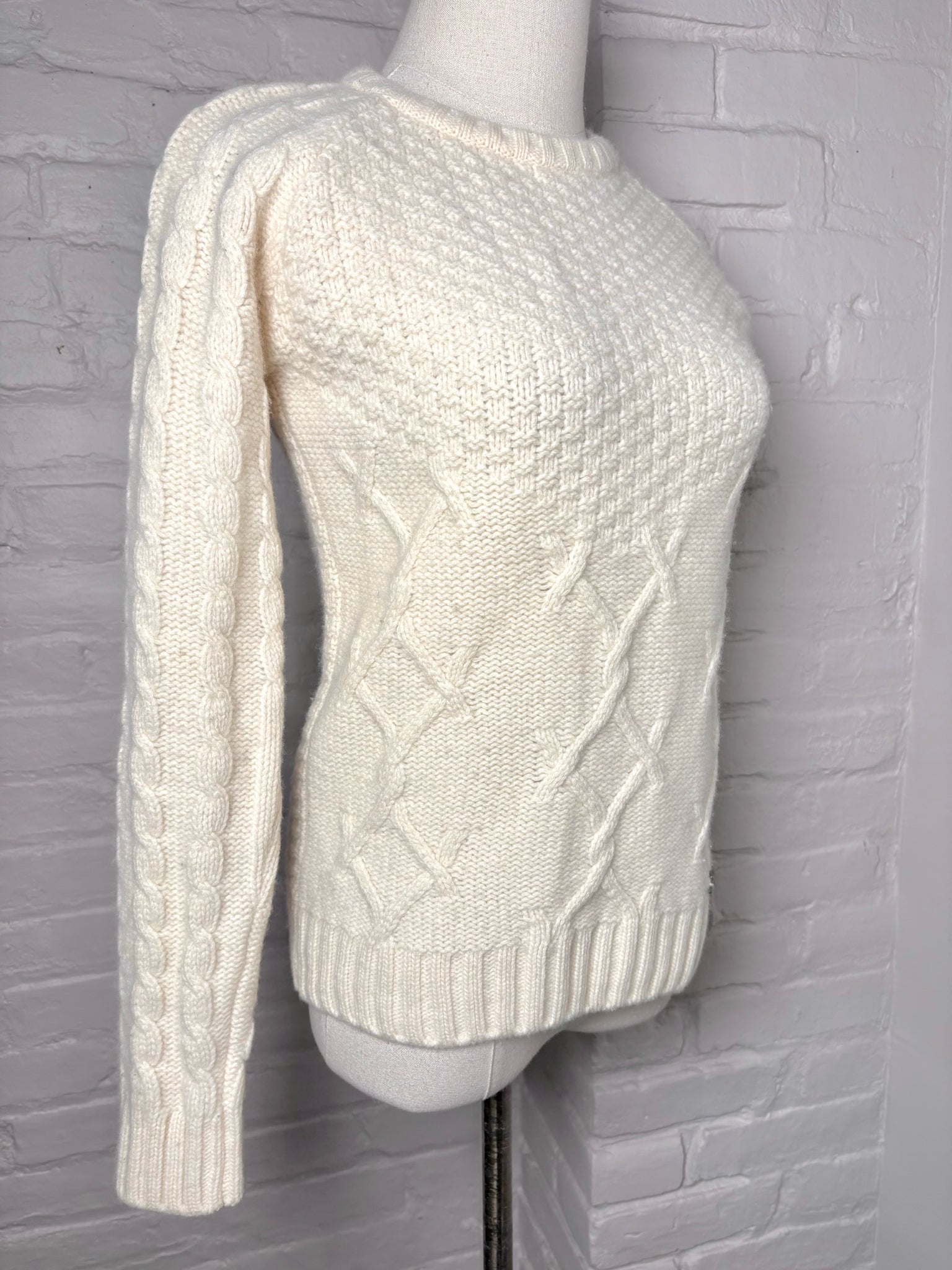 Women Size S Barbour Cream Cable knit Wool Sweater