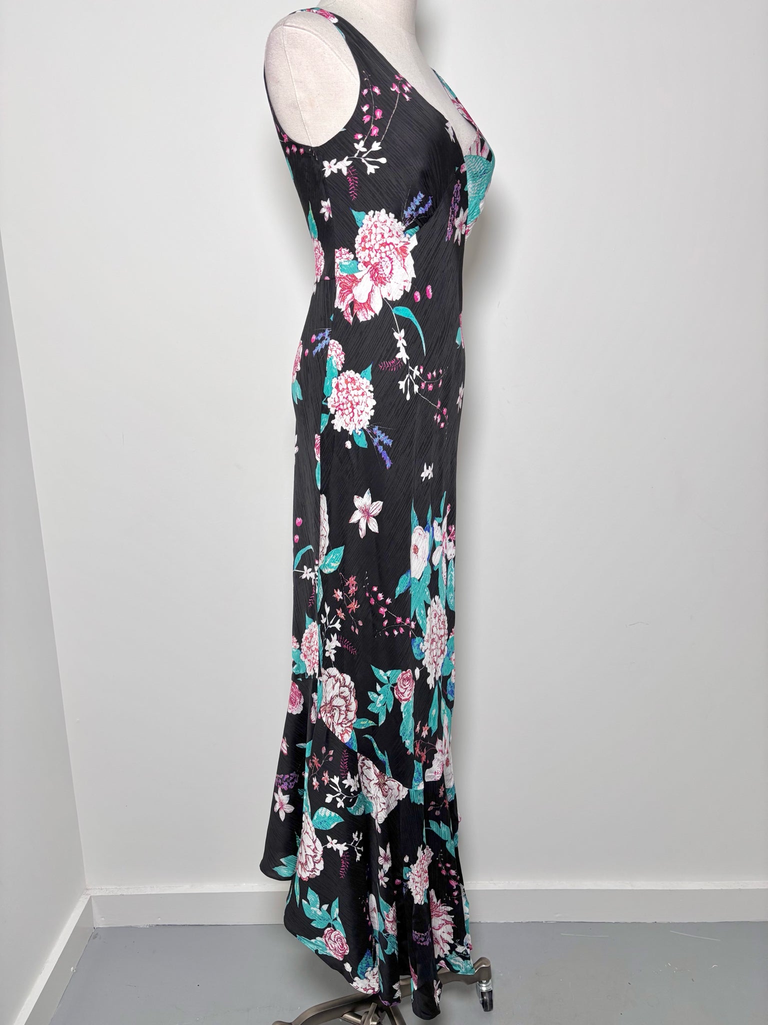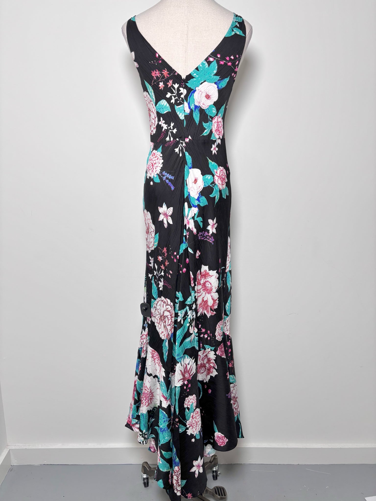 Diane Von Furstenberg black, pink, white and blue floral print maxi dress in a size small.