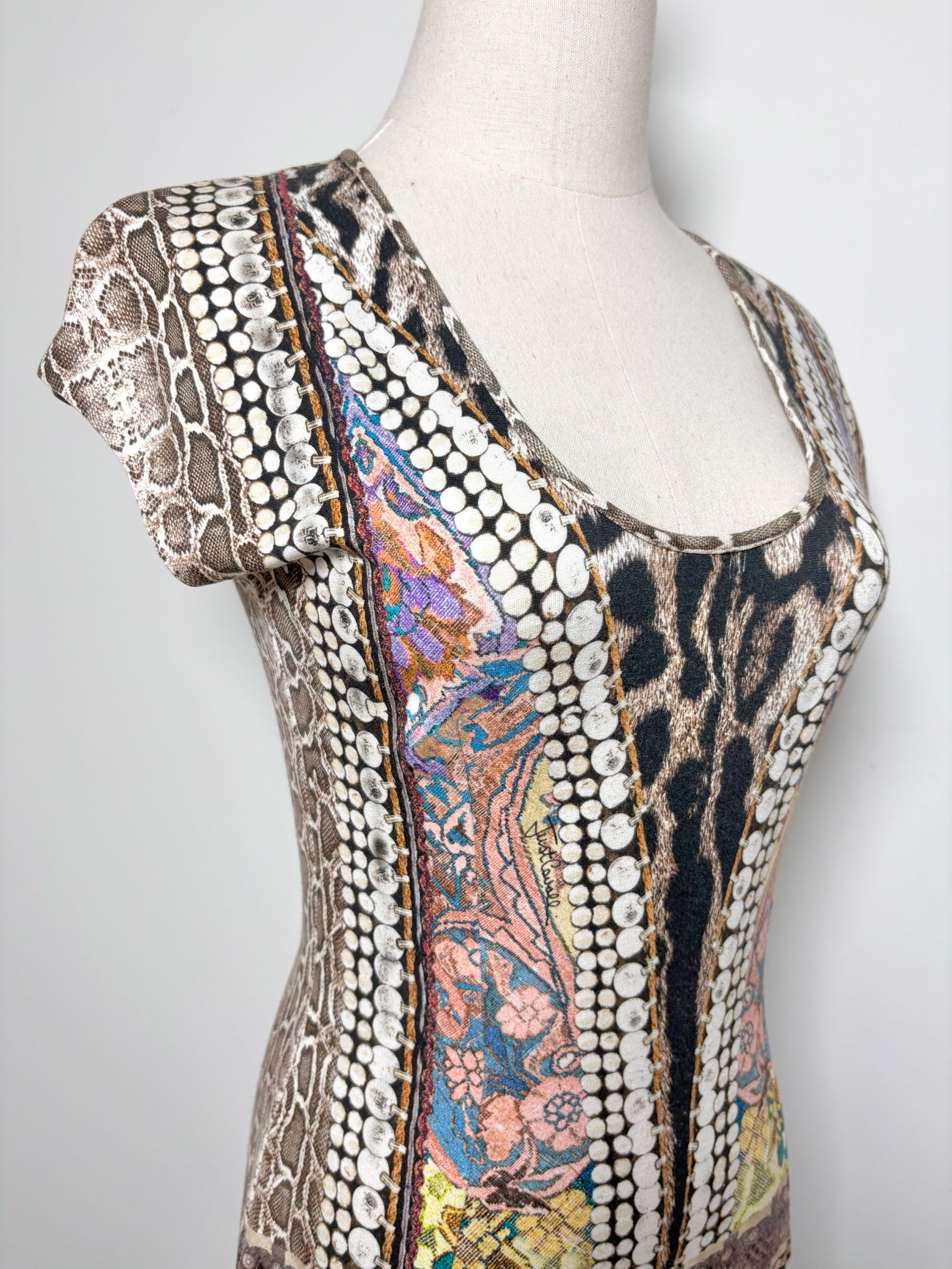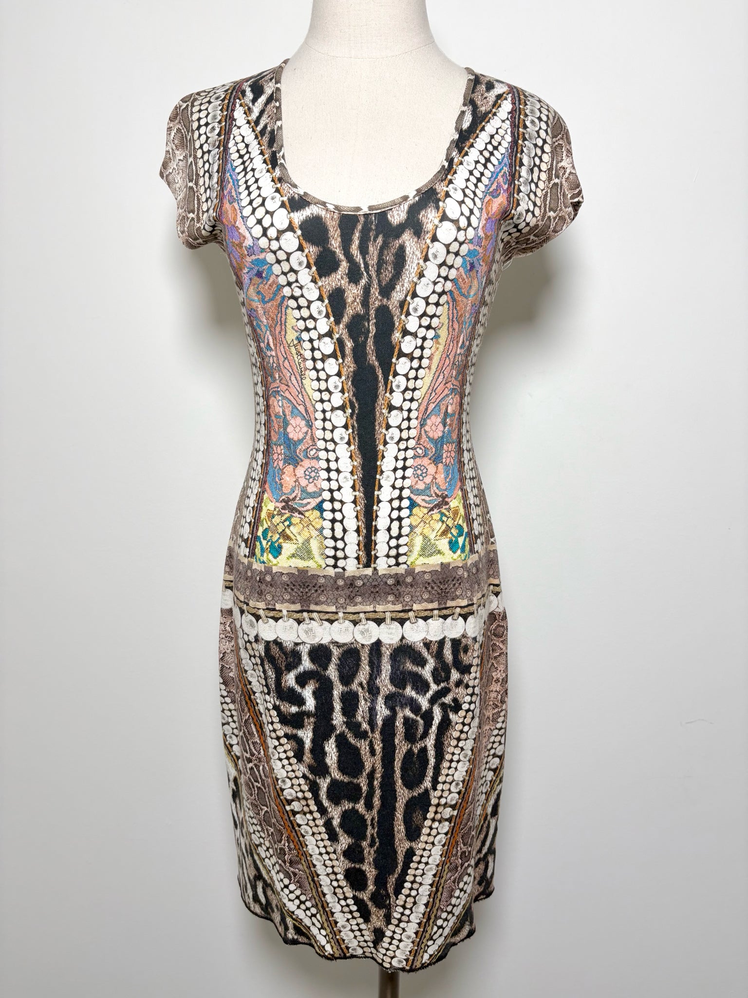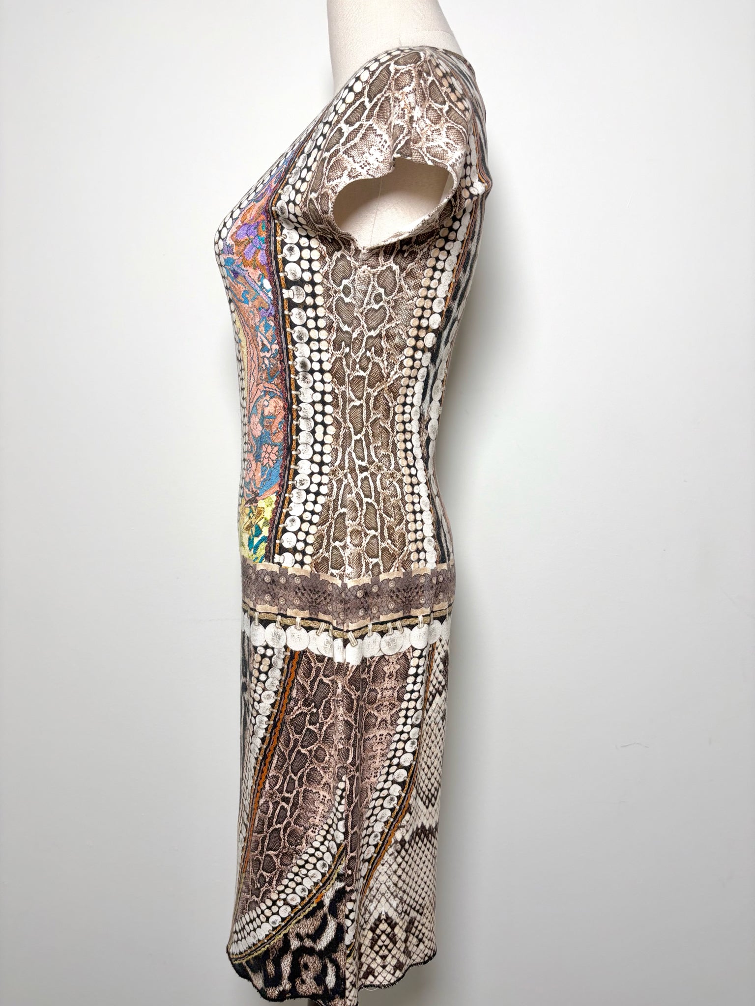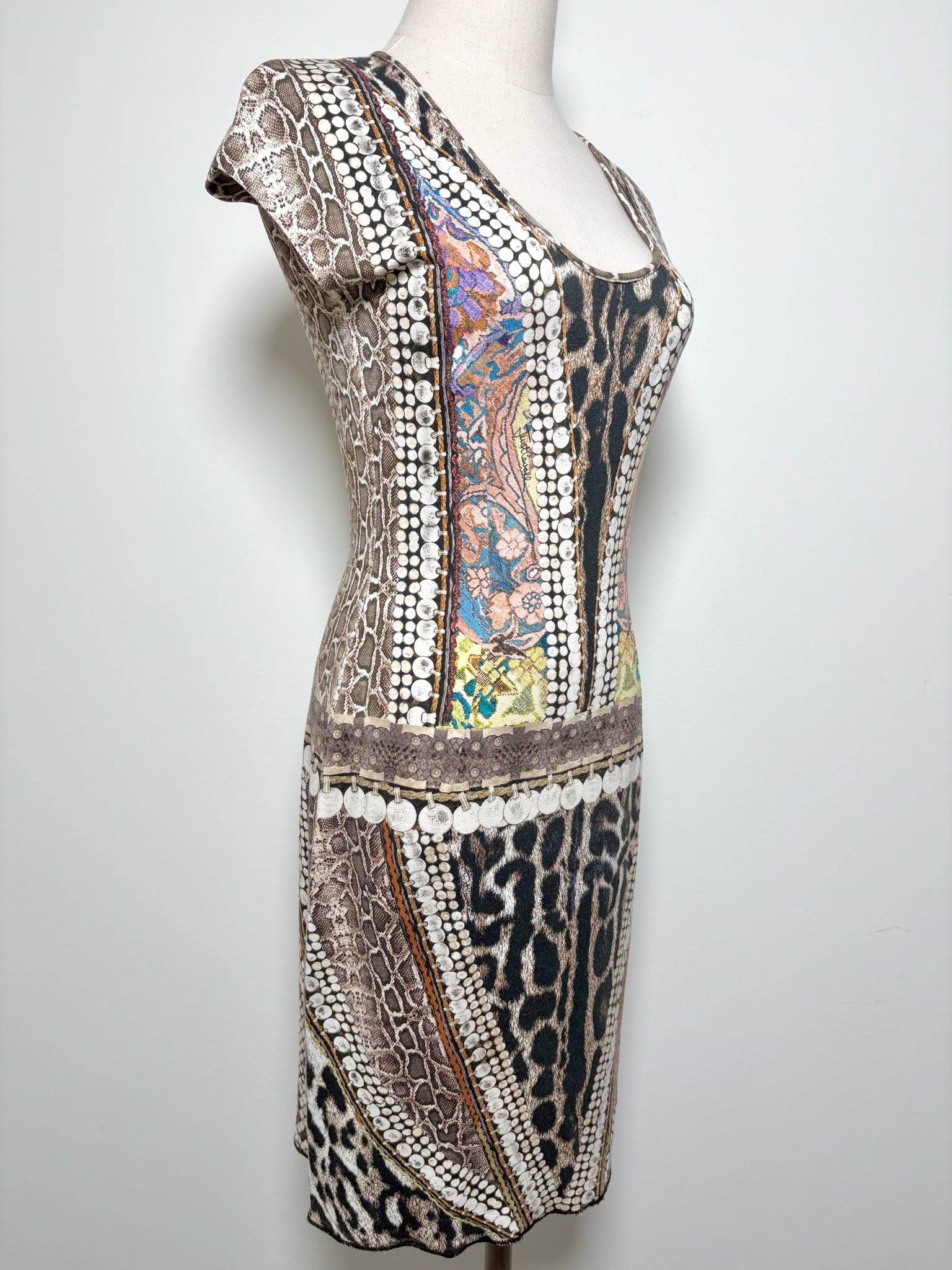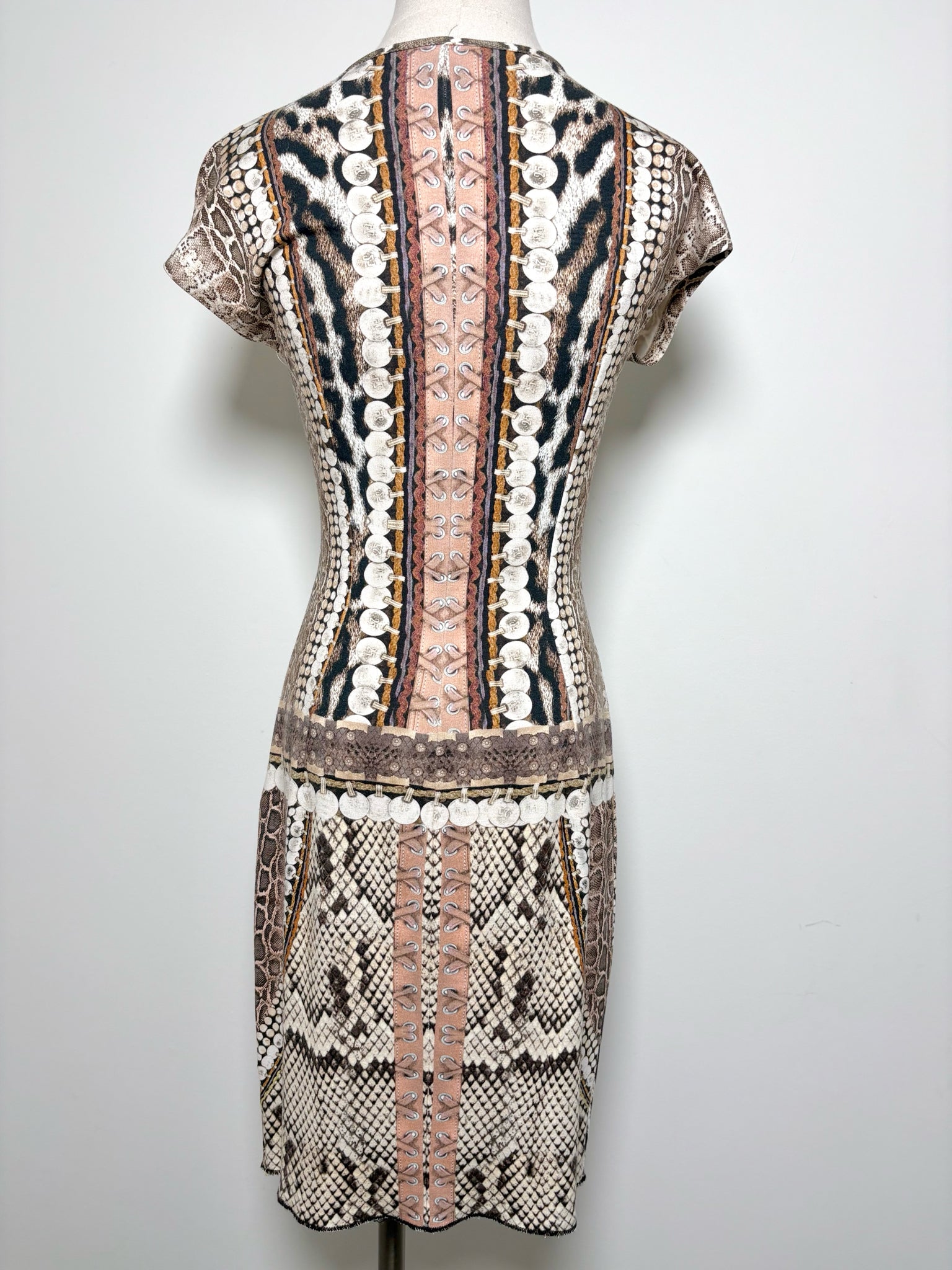Just Cavalli brown animal pattern cotton blend stretch bodycon mini dress in a size small.