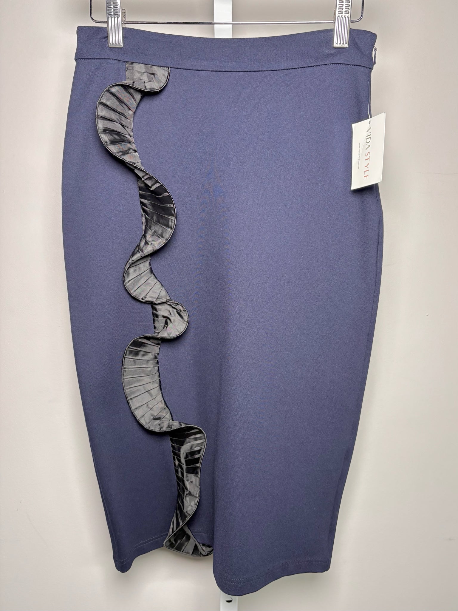 Opening Ceremony navy midi pencil skirt with black asymmetrical side ruffle in a size small.